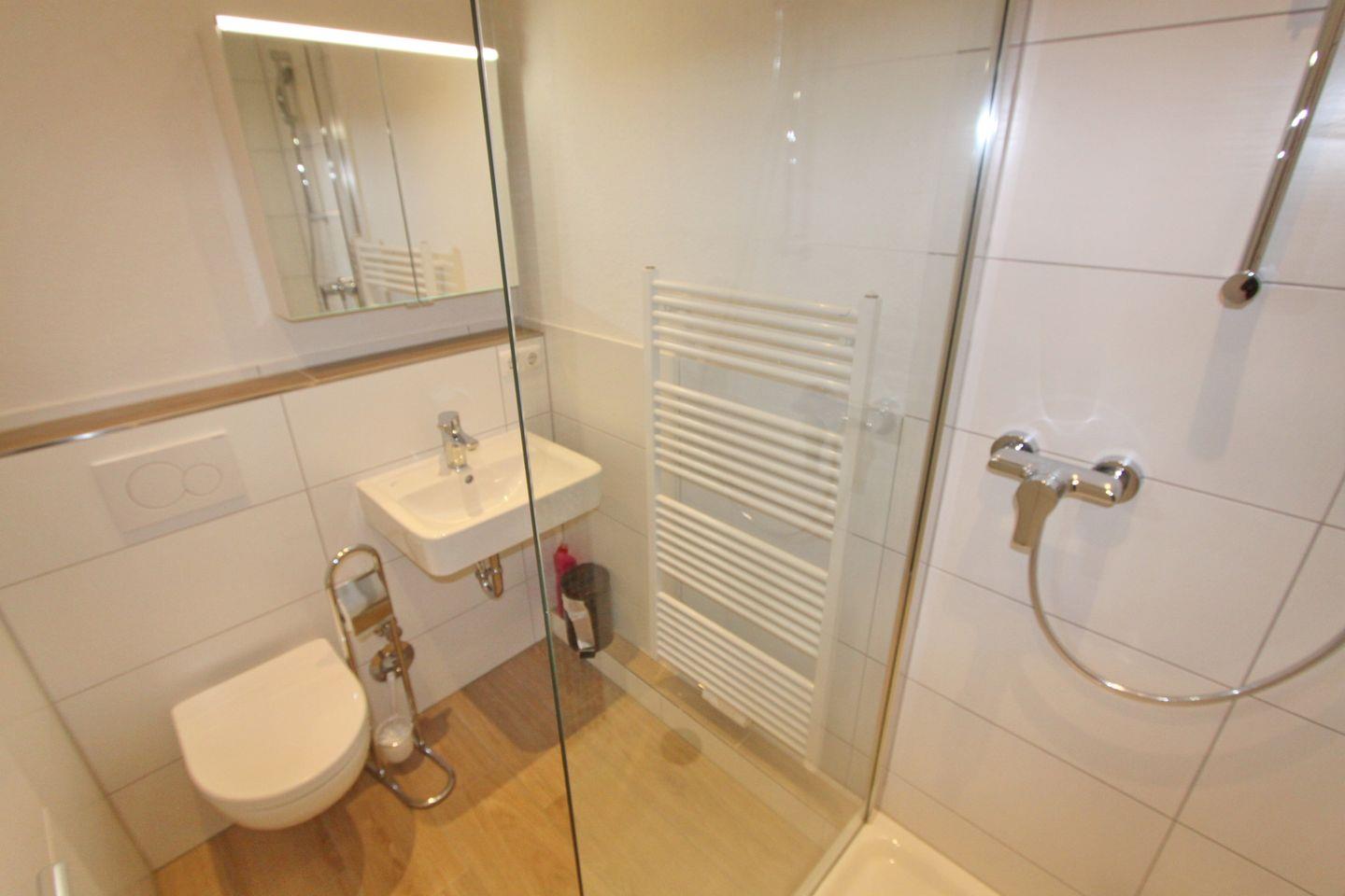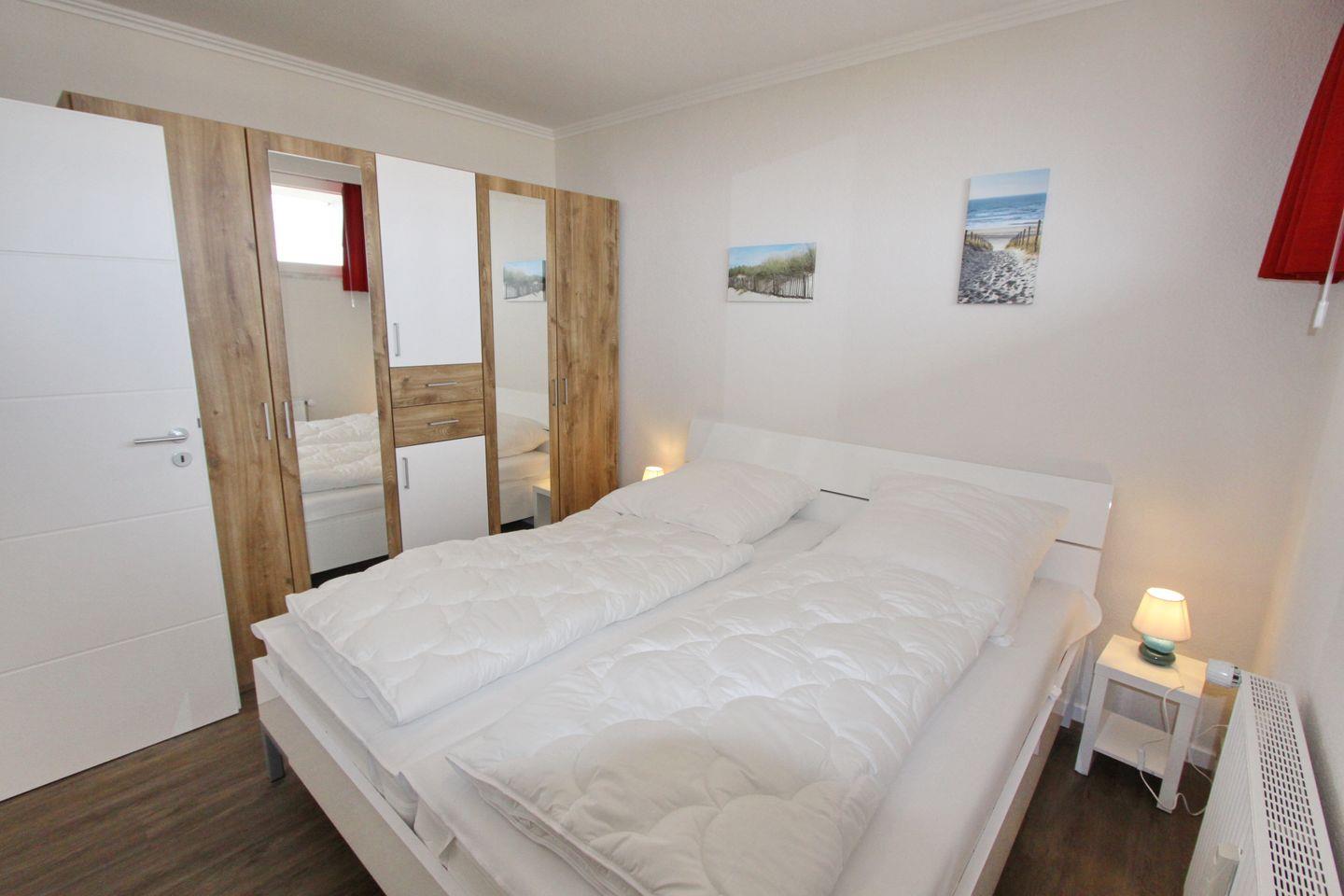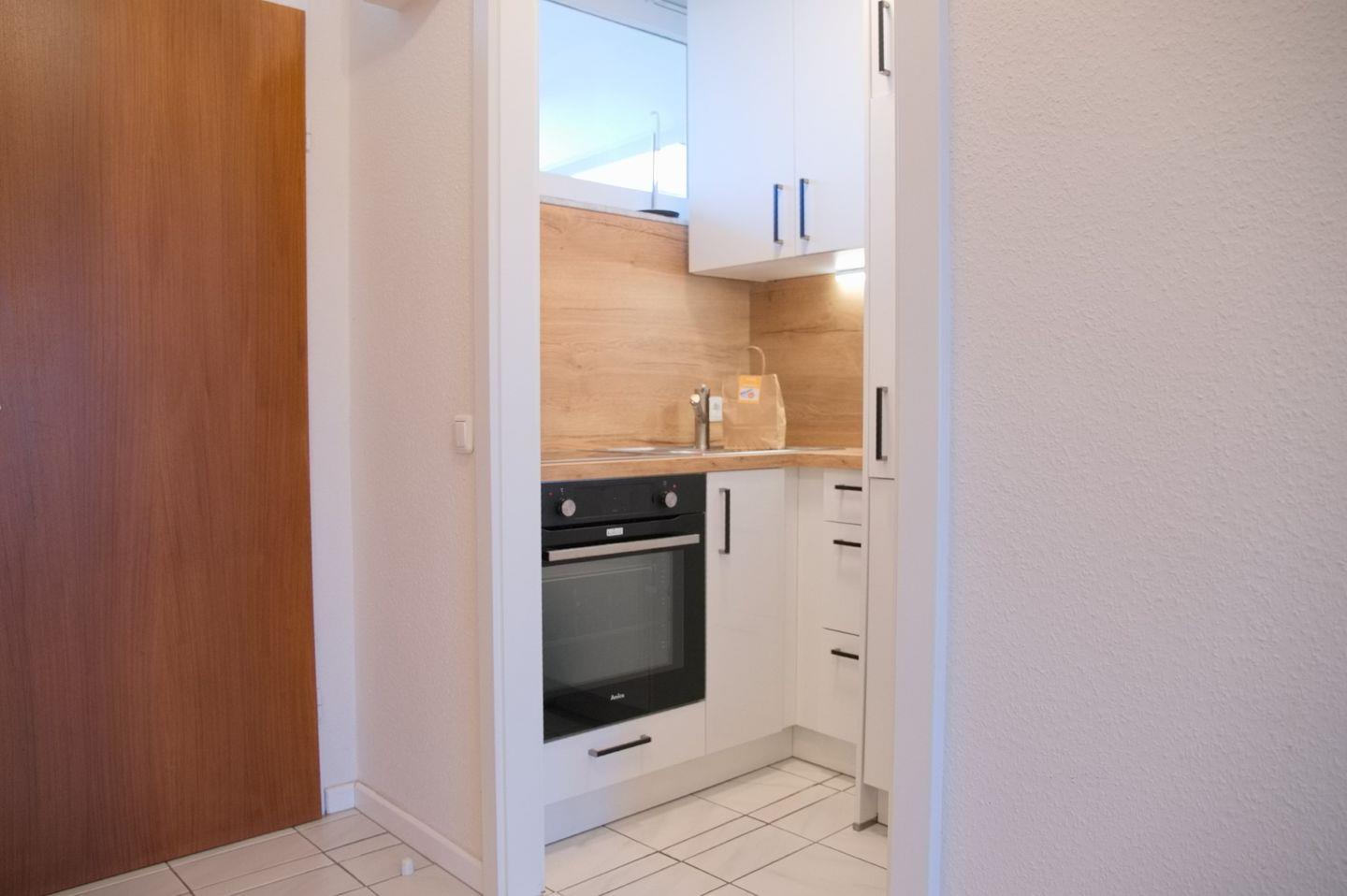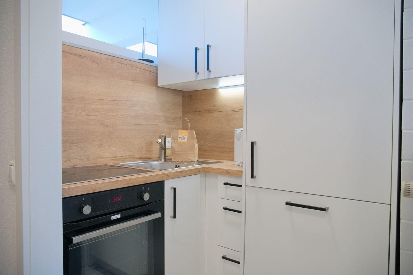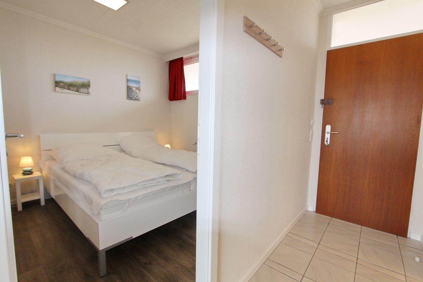 Zu Ihrer linken befindet sich die kleine Einbauküche mit Cerankochfeld, Backofen, Geschirrspülmaschine, Wasserkocher, Toaster und Kaffeemaschine. Ein Fenster ist ebenfalls vorhanden und sorgt für ein angenehmes Raumklima während des Kochens. Gegenüber der Küche finden Sie das neu eingerichtete Schlafzimmer mit Doppelbett (2x90x200 cm), großem Kleiderschrank mit Spiegeltür und Verdunklungsgardinen. Zurück auf den Flur gelangen Sie weiter in das geräumige Wohnzimmer mit Essecke und Zugang zum schönen Balkon.
