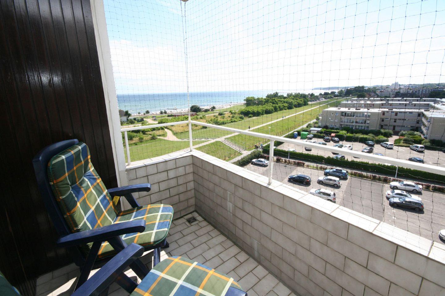 Moderne Ferienwohnung in Grömitz mit Balkon und direktem Meerblick, nur wenige Schritte vom Strand entfernt.