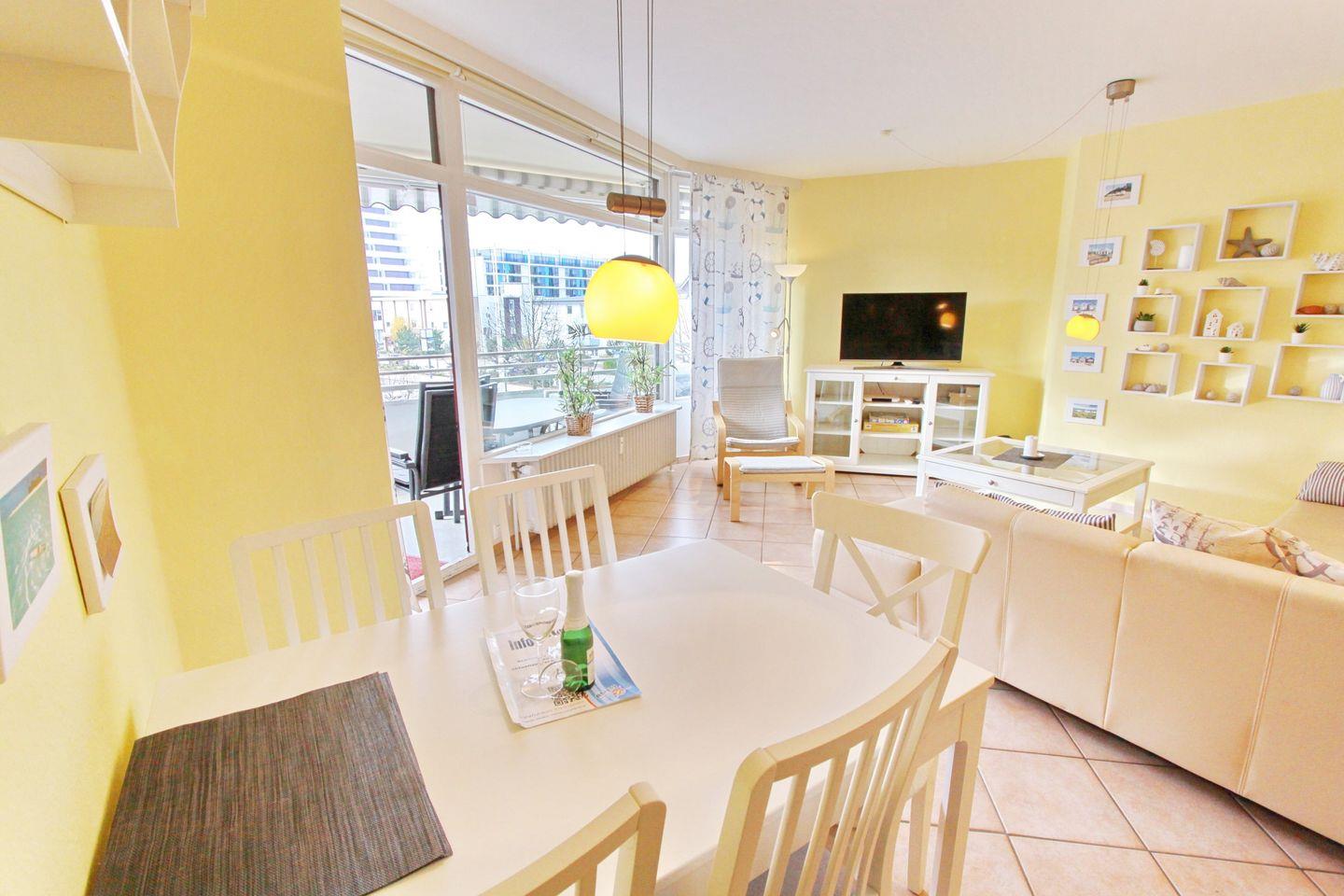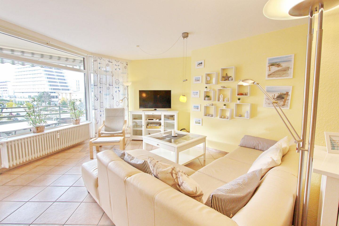 Wellenrauschen, Möwen, Strandkörbe und das Meer. Hier haben Sie alles! Helle 3- Zimmer Ferienwohnung mit Balkon und Teilseeblick in TOP- Lage!