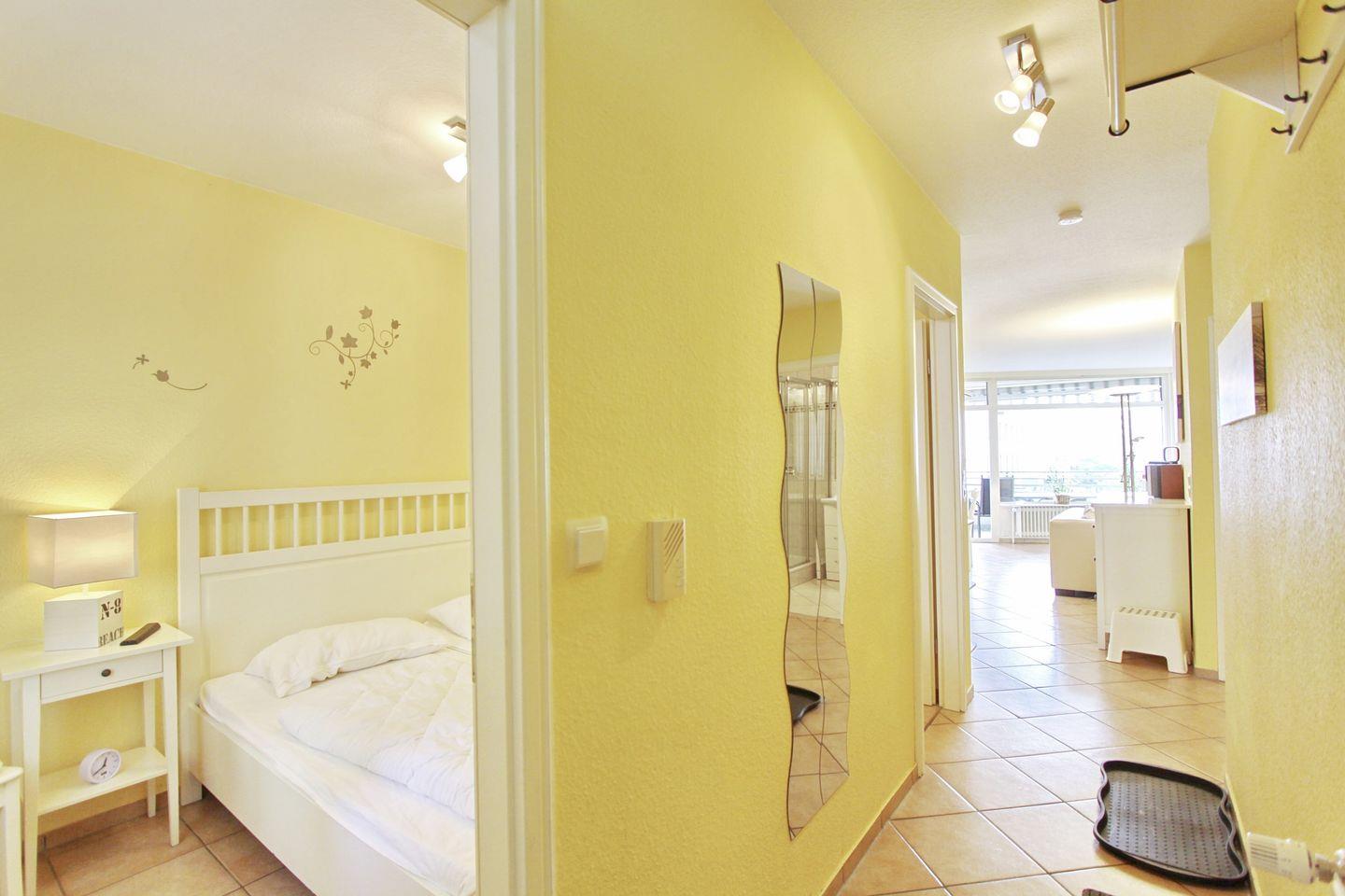 Ein schmaler Flur mit Garderobe und Ablage führt Sie in alle Räume. Der große Einbauschrank sowie eine große Kommode halten reichlich Ablagemöglichkeiten bereit.