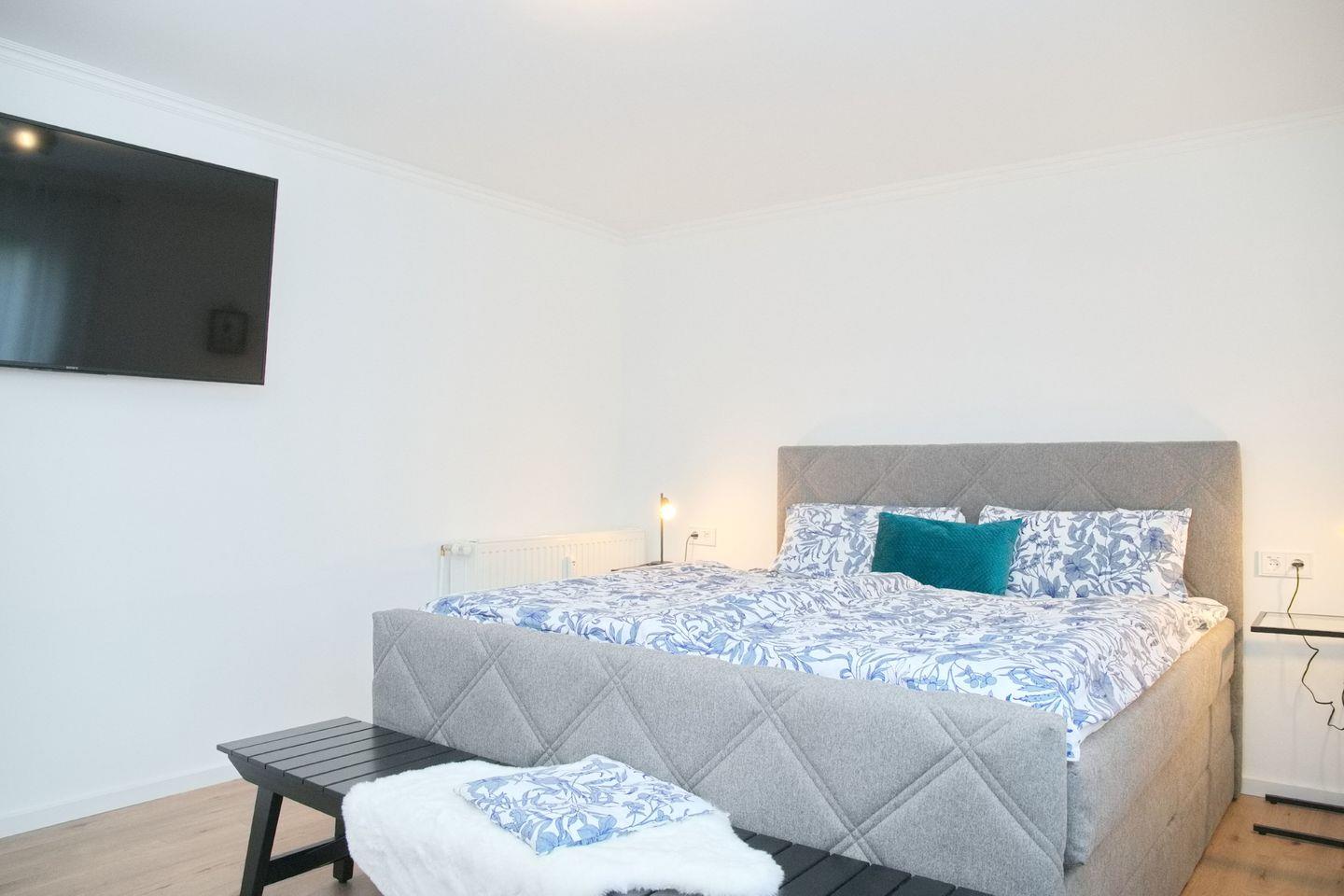 Das Schlafzimmer bietet höchsten Komfort mit einem großzügigen Boxspringbett (180x200 cm) mit durchgehendem Topper. Der Kleiderschrank bietet ausreichend Stauraum, und auch hier gibt es einen Flachbild-TV, um den Tag gemütlich ausklingen zu lassen. Ein Kinderreisebettchen passt ebenfalls problemlos in dieses Zimmer.