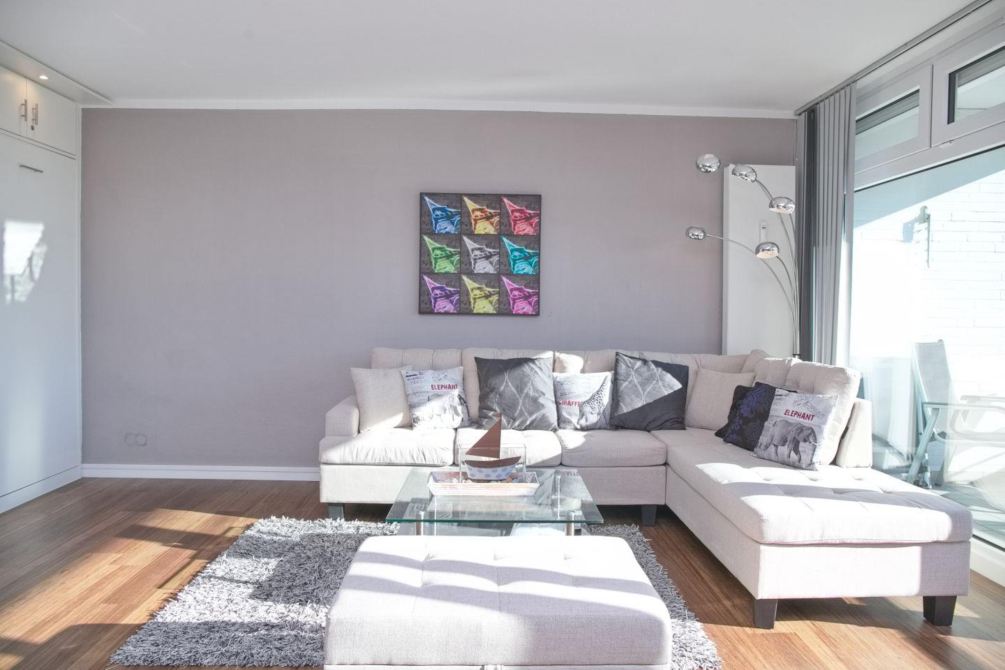 Strandnah in Grömitz schöne renovierte Ferienwohnung mit möblierten Balkon und Seeblick.