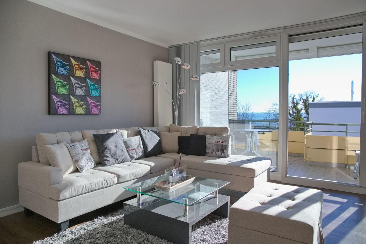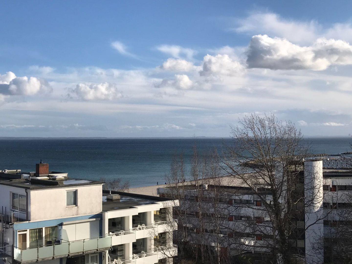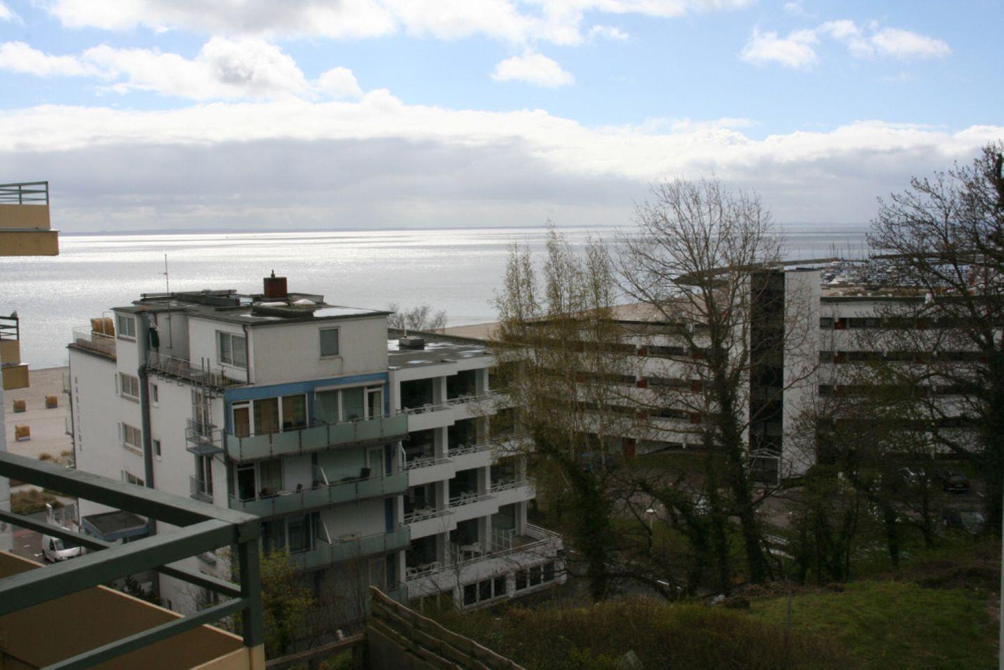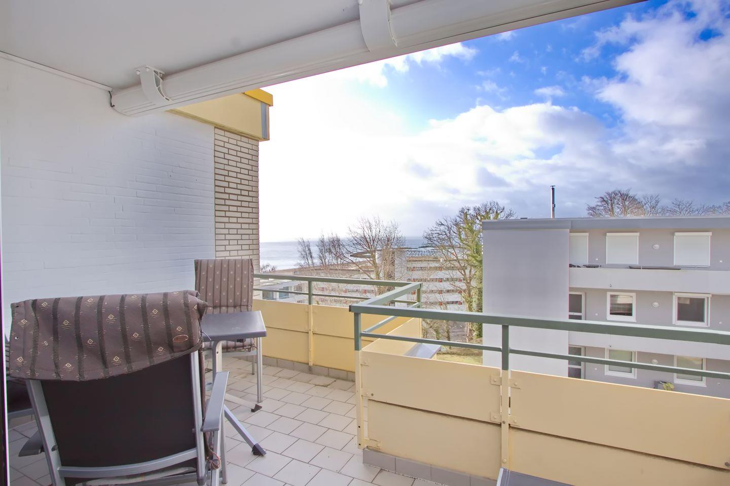 Strandnahe Ferienwohnung in Grömitz mit möbliertem Balkon und herrlichem Seeblick, ideal für erholsame Tage an der Ostsee.