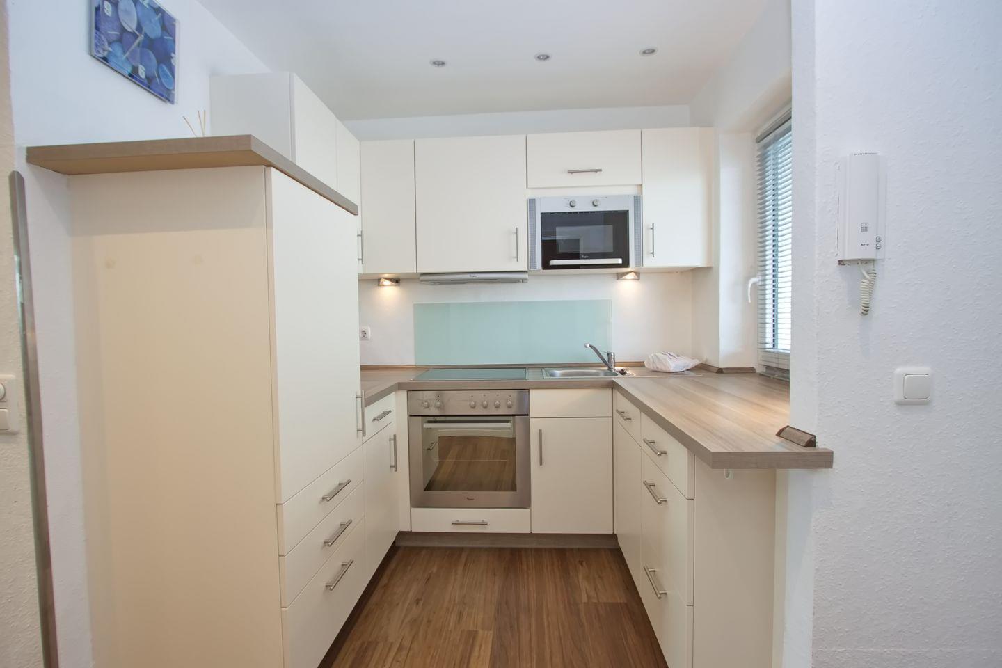 In der separaten Einbauküche finden Sie vieles um Ihre lieben während Ihres Aufenthaltes mit Ihren Kochkünsten zu verwöhnen. Dort finden Sie unter anderem ein 4 Platten Cerankochfeld, ein Backofen, ein Kühlschrank mit 3*Gefrierfach, Kaffeemaschine, Toaster, Wasserkocher, Geschirrspüler und vieles mehr.
