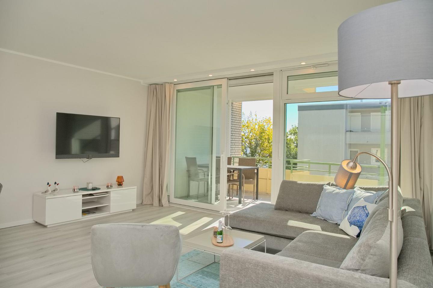 Frisch sanierte 2 Zimmer Ferienwohnung in der Anlage "Miramar" direkt an der Promenade, Teilseeblick und Süd- Westbalkon.