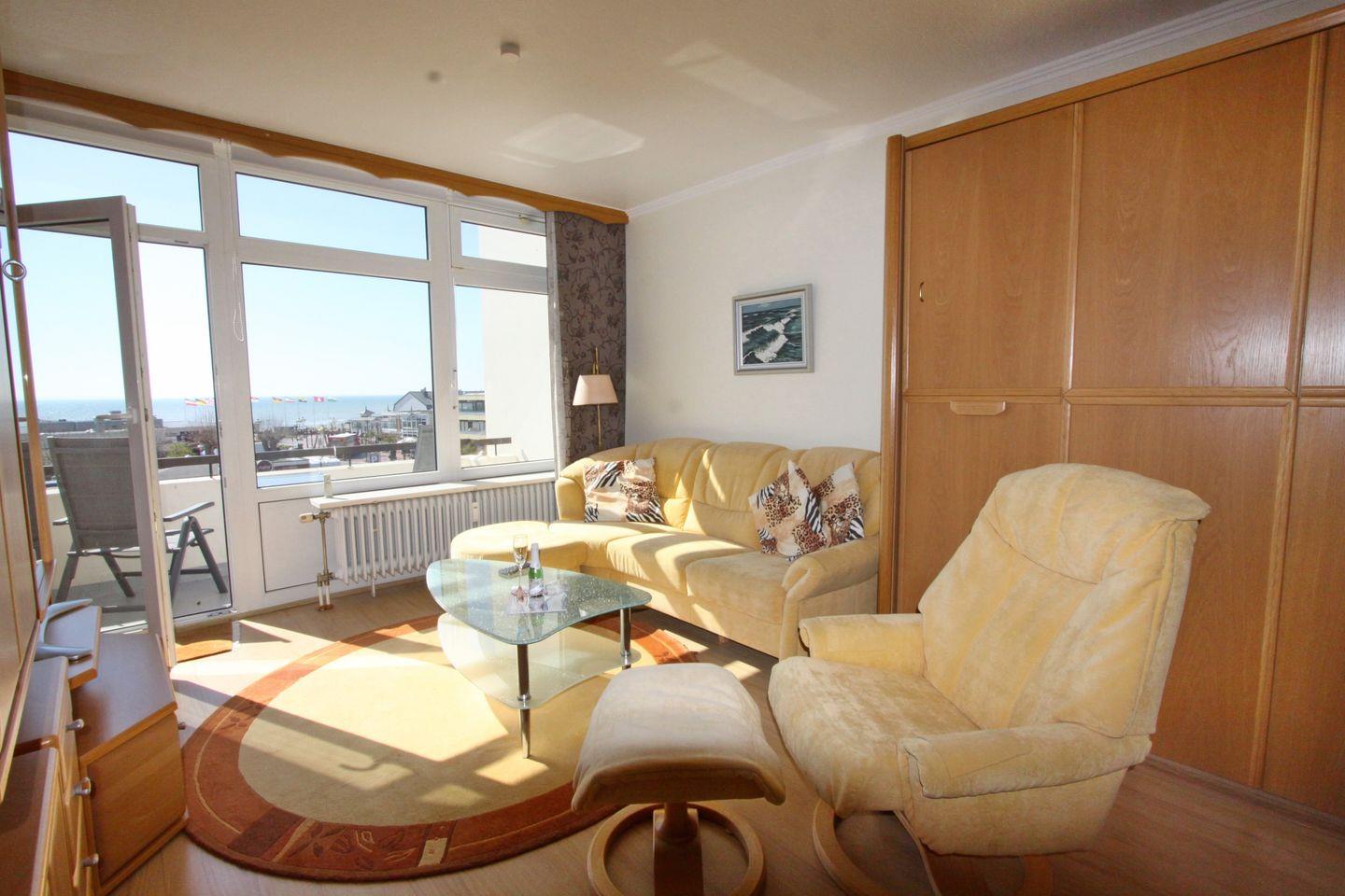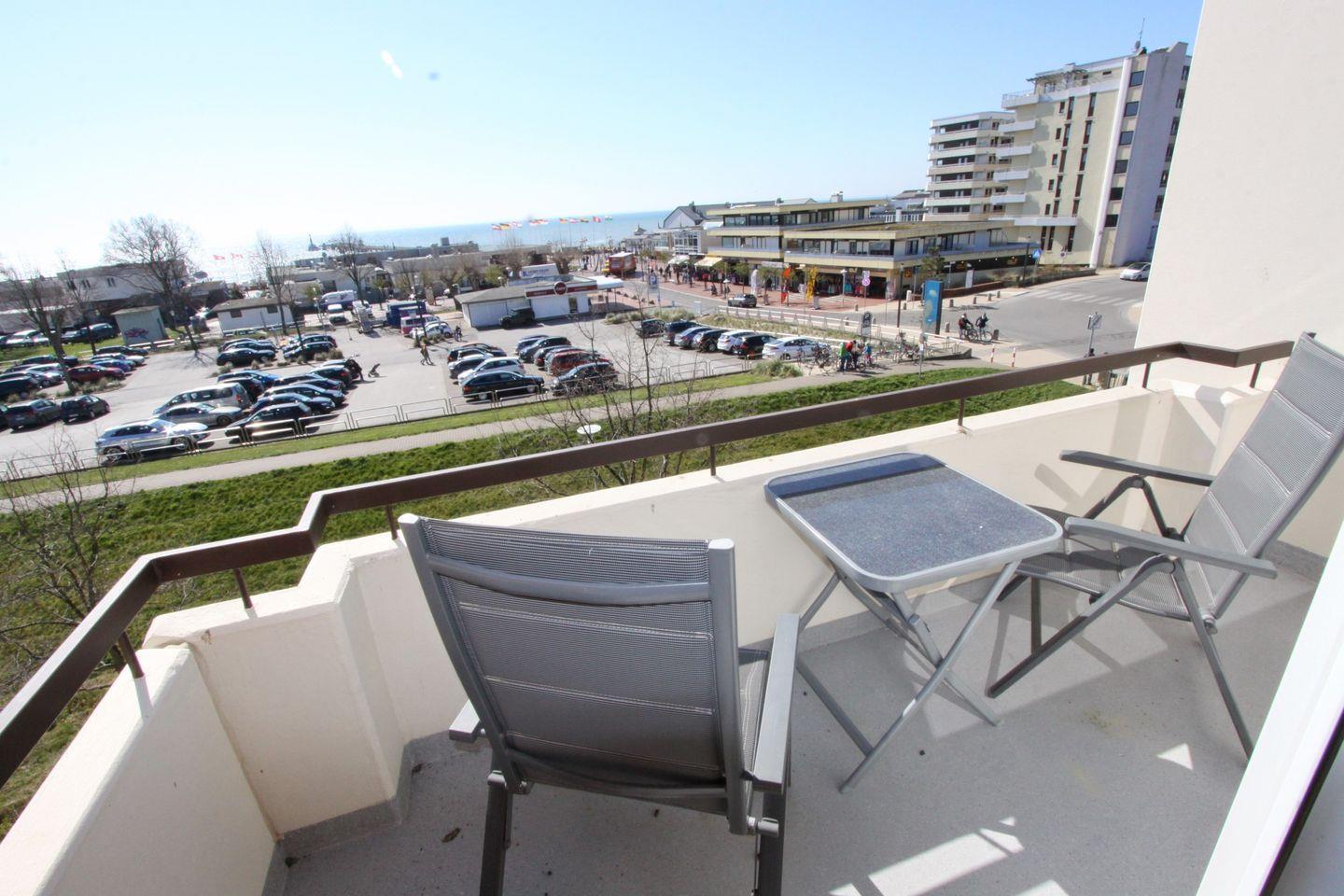 Gemütliche Ferienwohnung mit Seeblick und möbliertem Südbalkon direkt am Seebrückenvorplatz in Grömitz.