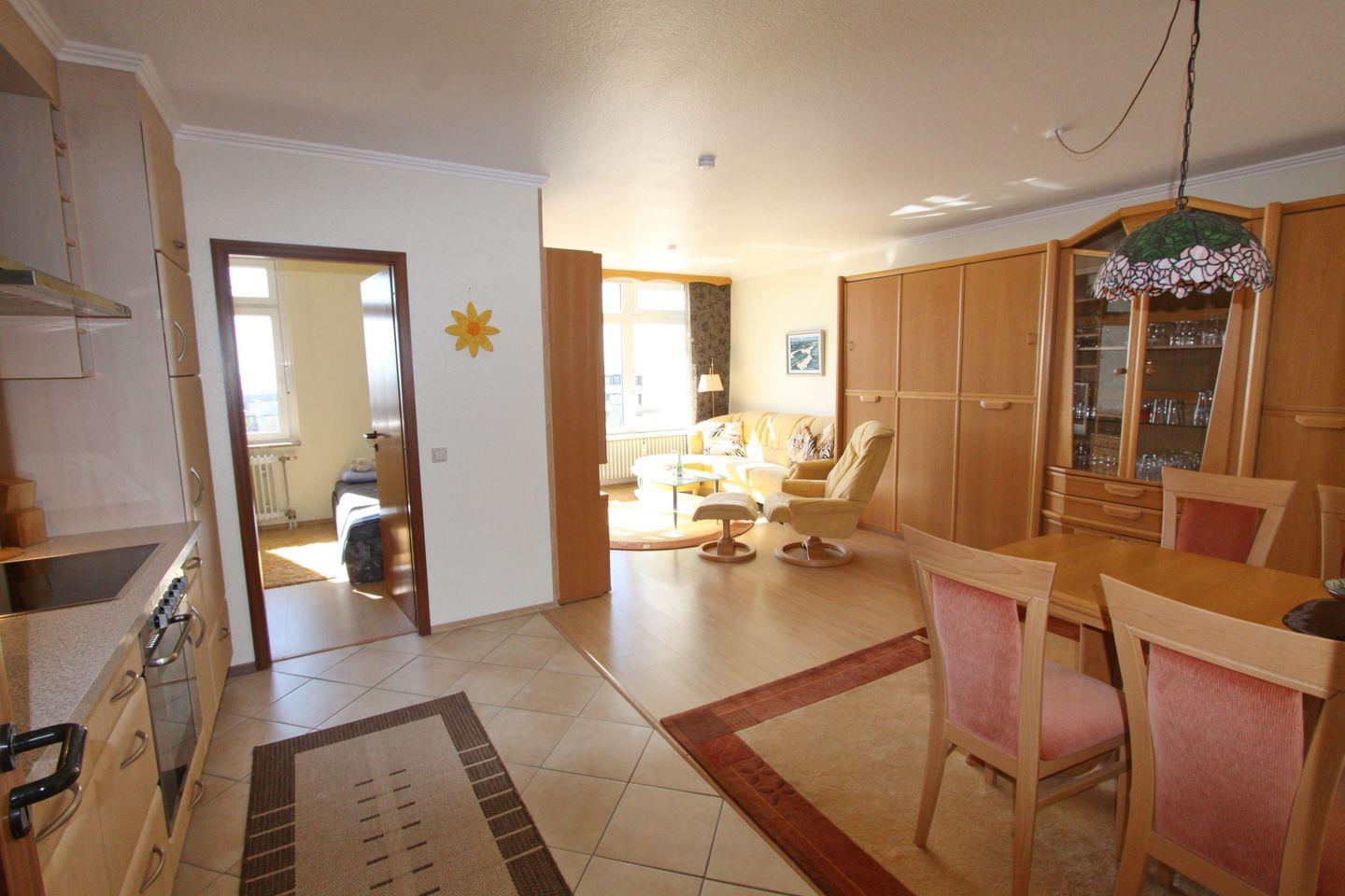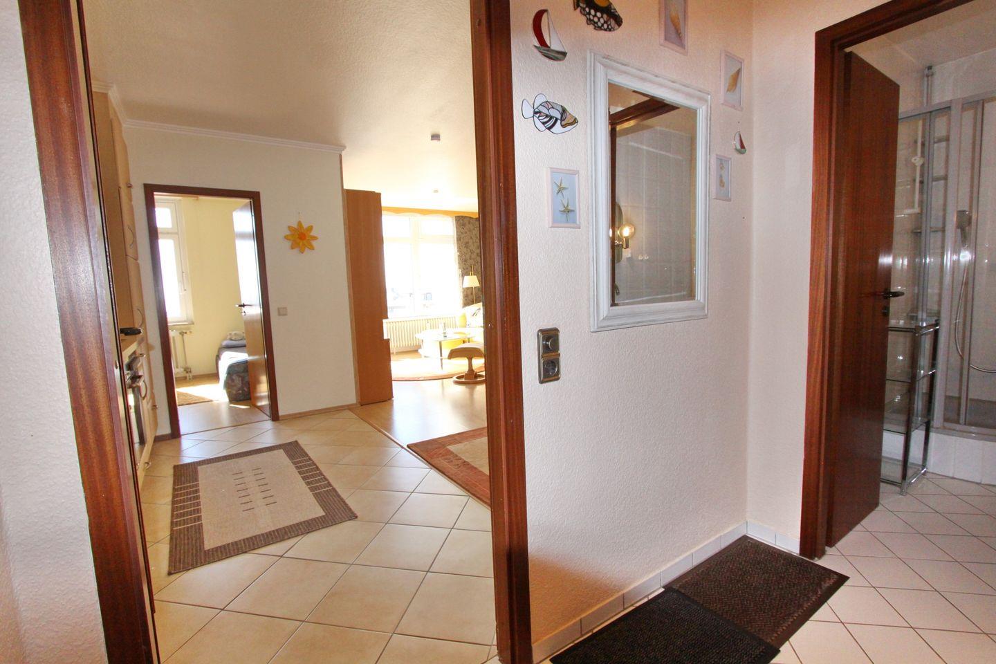 Diese behagliche Ferienwohnung mit möblierten Südbalkon und Seeblick, befindet sich direkt am Seebrückenvorplatz, im Herzen von Grömitz.