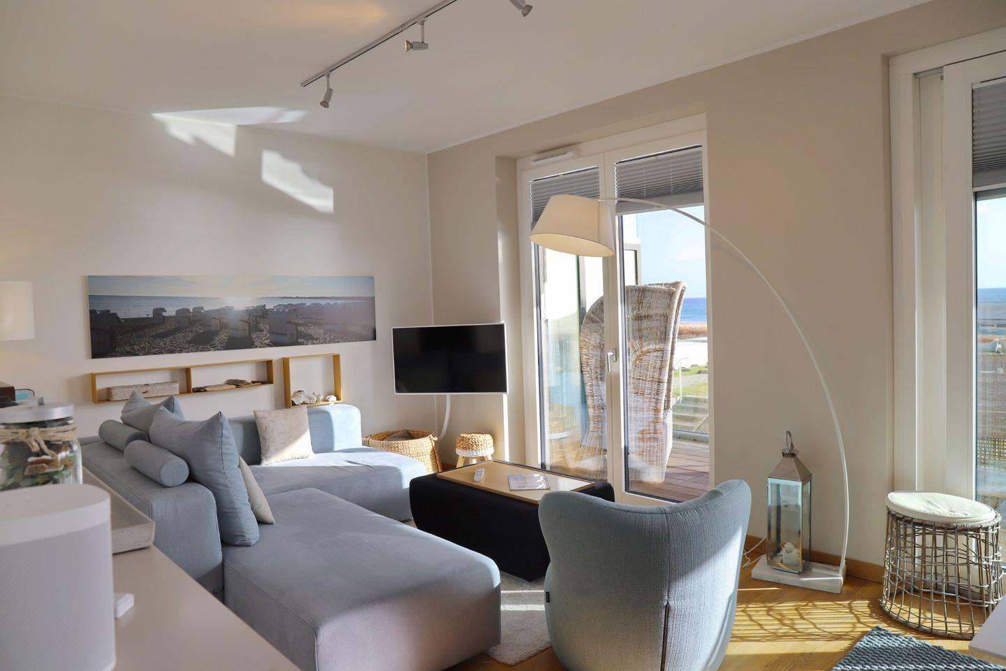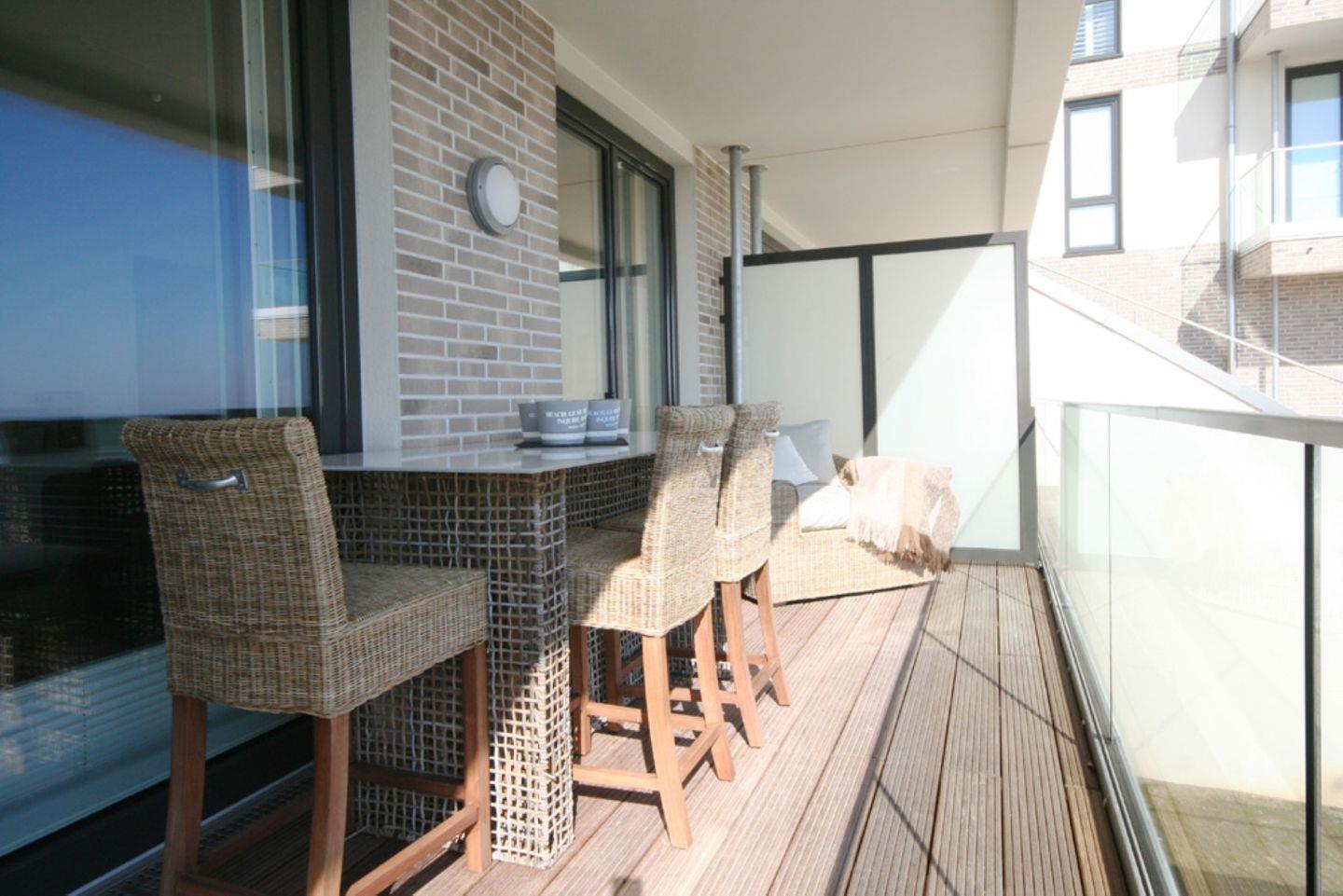 Luxus Ferienwohnung über zwei Etagen mit möblierter Terrasse und möblierten Balkon mit Strandkorb und eigenem Strandzugang, direkt an der Promenade.