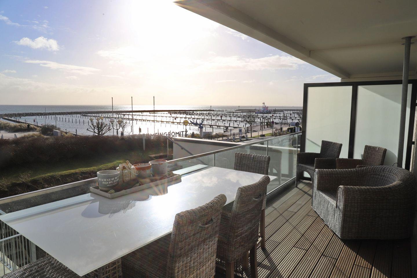 Der möblierte Balkon verspricht Sonne und Meerblick.