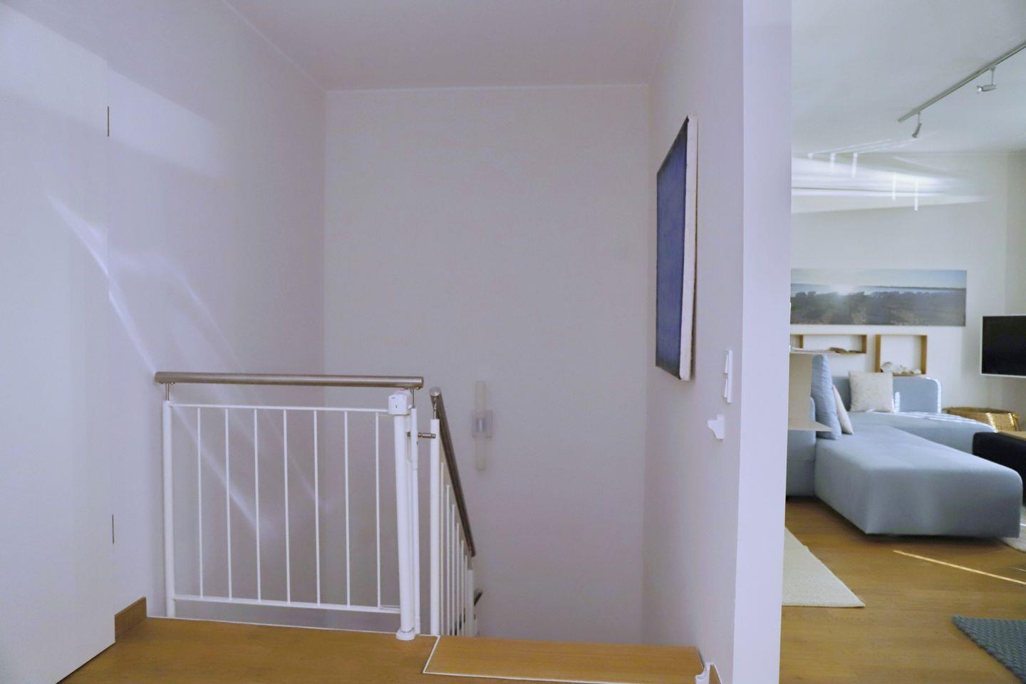 Stauraum für Ihre Kleidung finden Sie auf dem Flur in dem großen Kleiderschrank mit Spiegeltür. Gegenüber des Schlafzimmers finden Sie das innen liegende Bad mit wandhängendem WC, Doppelwaschtisch, Handtuchheizung, Fön und bodengleicher Regendusche.