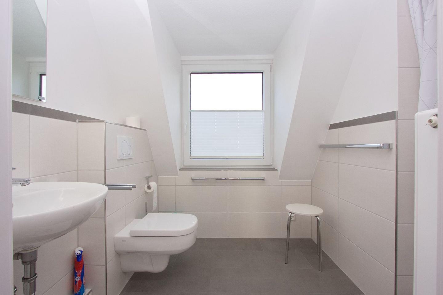 Die 55 m² große Wohnungen befindet sich im 1. Obergeschoss direkt hinter dem Deich und verteilt sich auf 3 Zimmer, einer gut ausgestatteten Küche und einem modernes Duschbad/ WC.