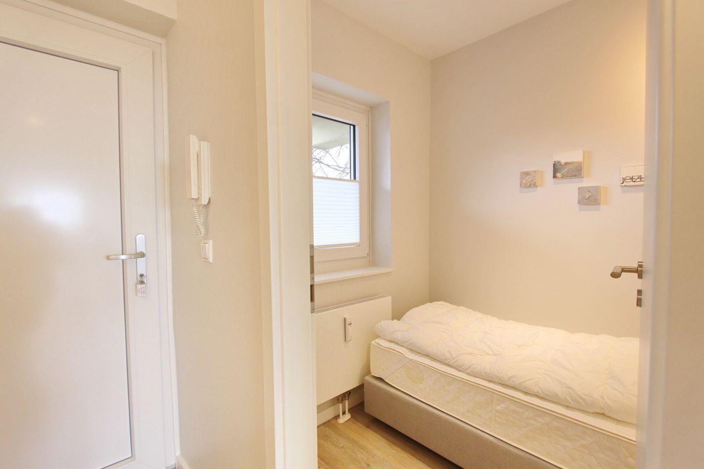 Das Schlafzimmer ist mit einem Boxspringbett (180 x 200 cm/ Taschenfederkern H 2), einem Kleiderschrank und einem wandhängenden TV ausgestattet. Des Weiteren ist das Zimmer durch zwei Türen zu begehen. Das zweite Schlafzimmer ist auch mit einem Boxspringbett (90 x 200 cm) und einem Kleiderschrank ausgestattet. Microfaserdecken und -kissen sorgen für einen erholsamen Schlaf. Die Schlafzimmer verfügen über Plissees, sowie elektrische Außenrollos.