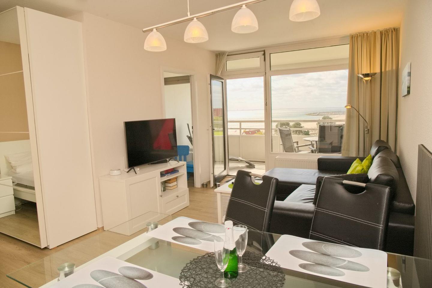 Hochwertige moderne Ferienwohnung mit möblierten Süd-West Balkon und Traumhaften blick über die Lübecker Bucht, nur wenige meter vom Strand entfernt.