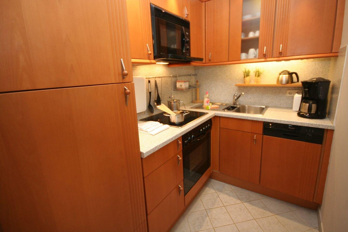 In der separaten Küche finden Sie ein Cerankochfeld, ein Backofen, ein Geschirrspüler, einen Kühlschrank mit Gefrierfach, eine Kaffeemaschine, einen Wasserkocher, einen Toaster und eine Mikrowelle.