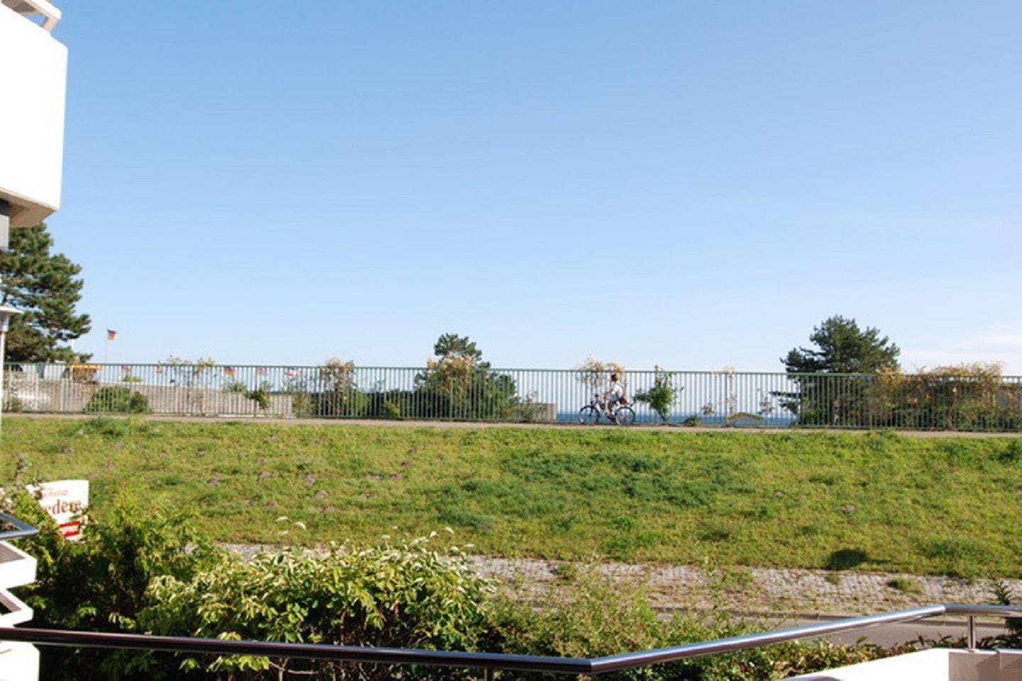 Gemütliche 2-Zimmer-Ferienwohnung in Grömitz mit Südbalkon und Meerblick, nur 130 Meter vom Strand entfernt.