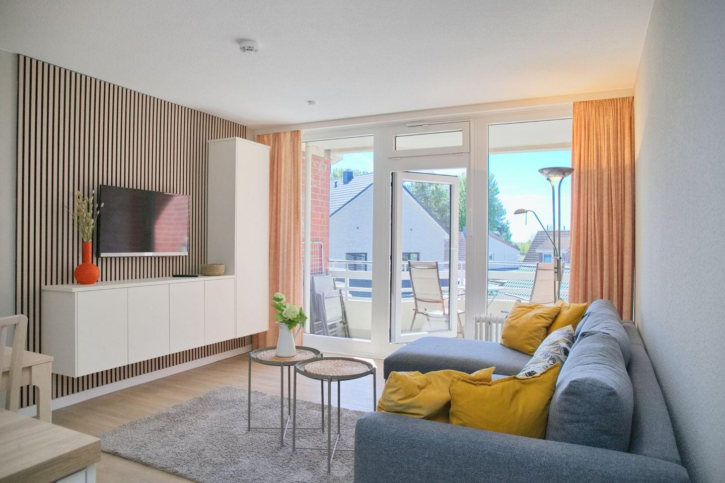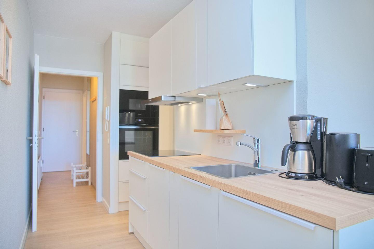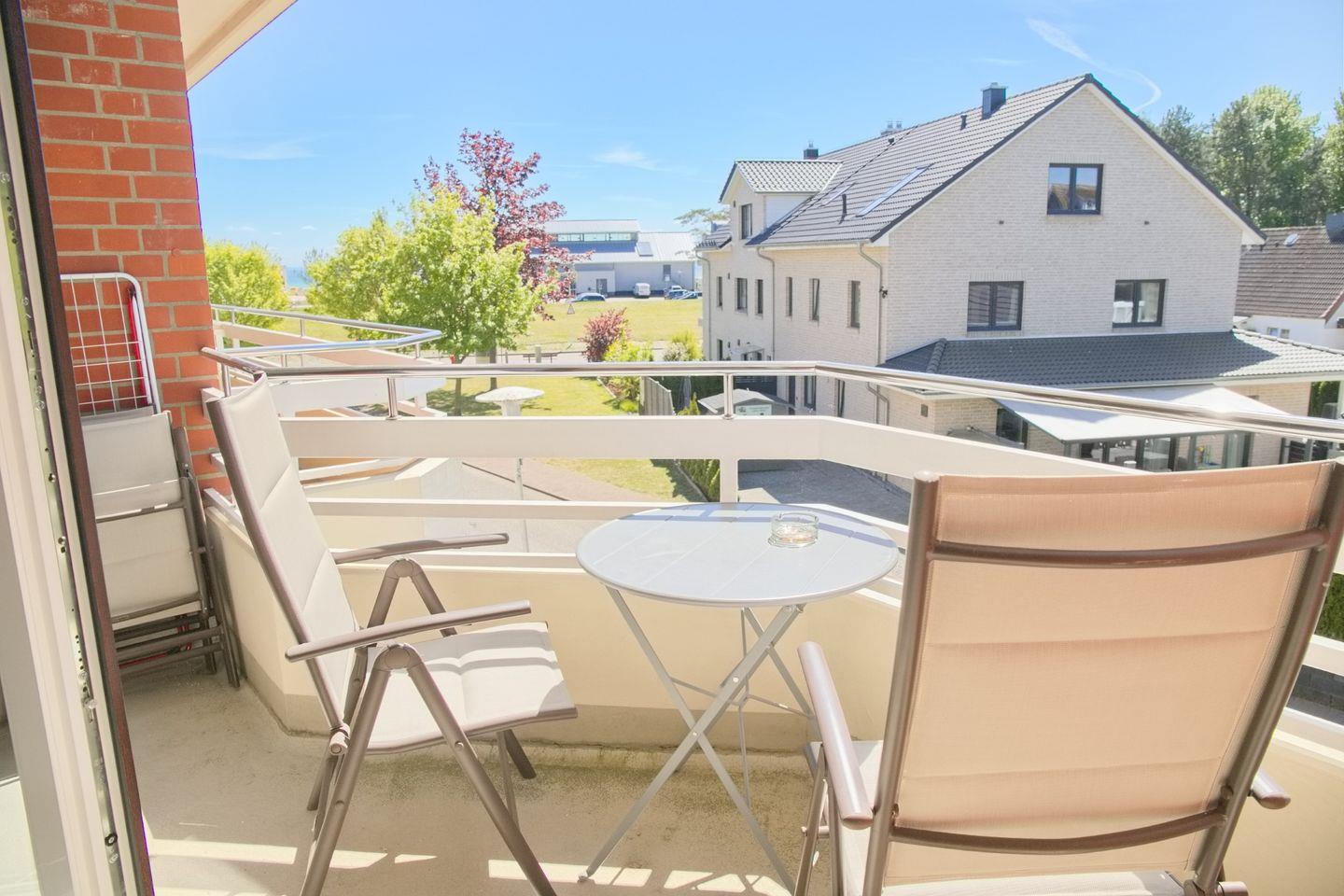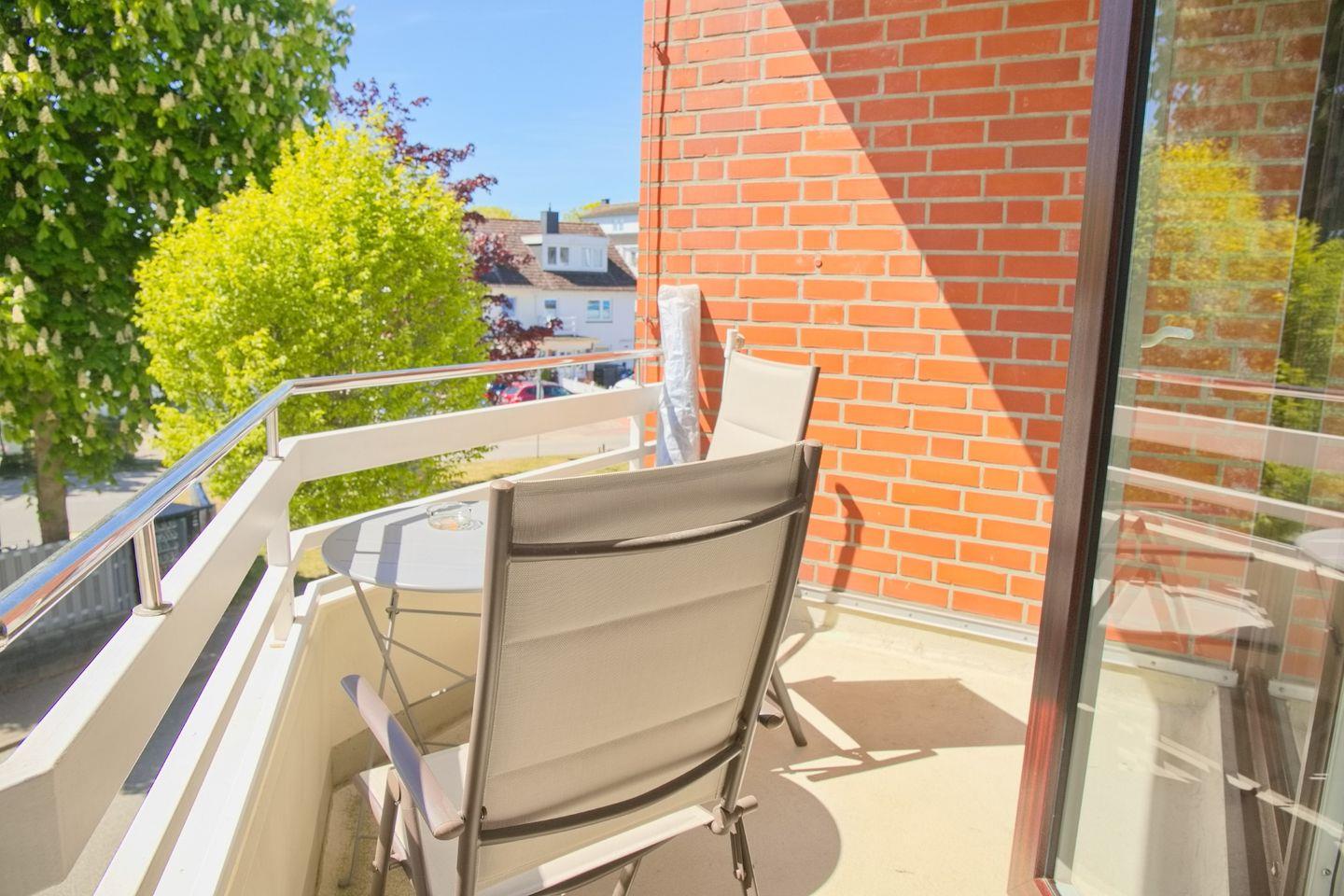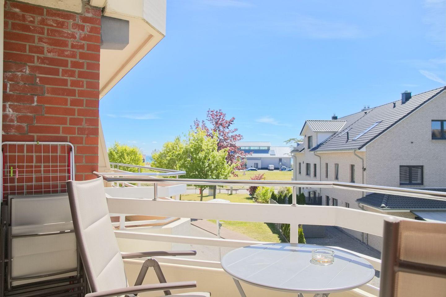 Schöne 2 Zimmerwohnung in der 2. Etage nur 80 Meter vom Meer entfernt. möblierter Balkon mit Teilseeblick. Stellplatz in der Tiefgarage inkl.