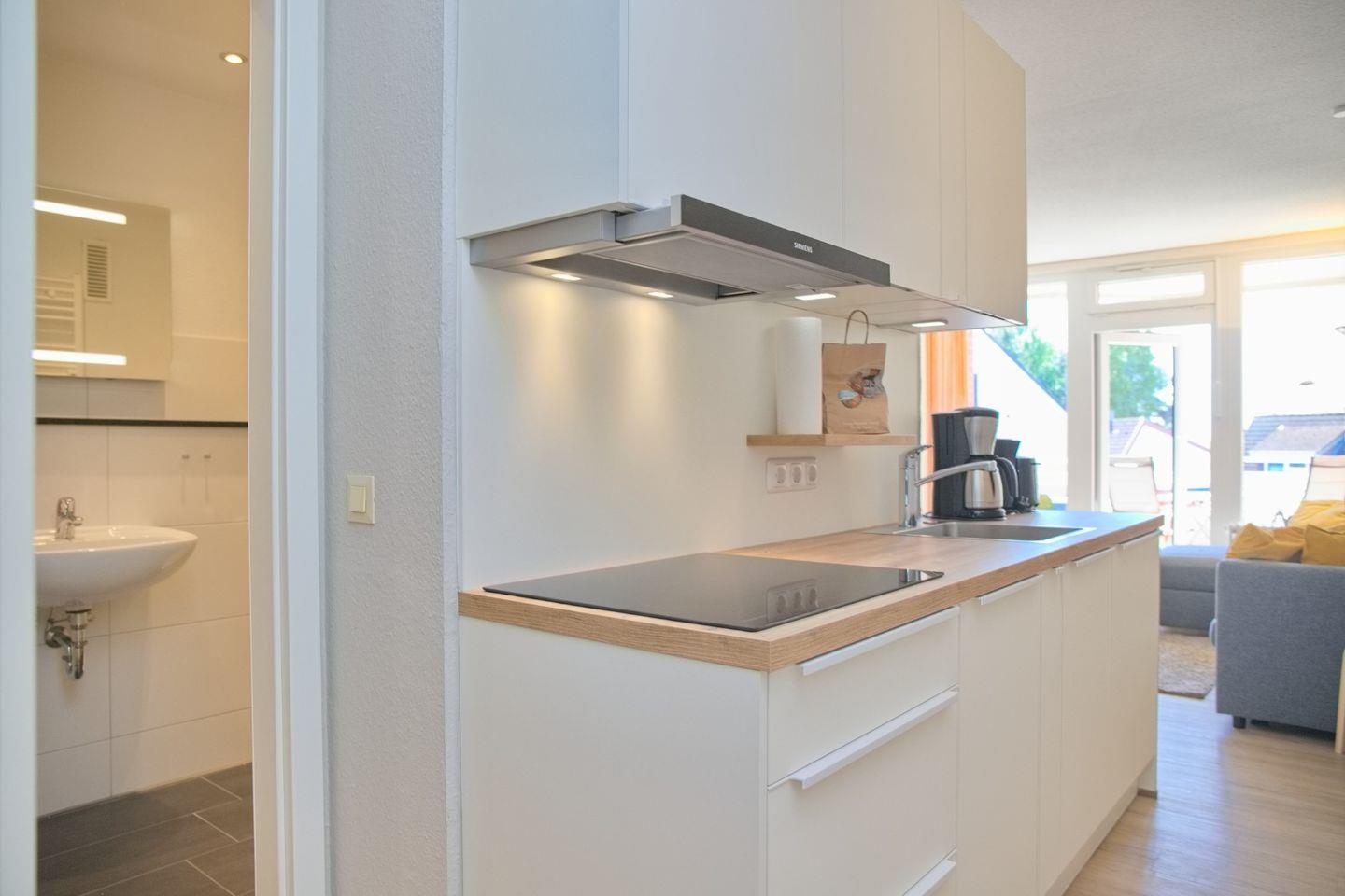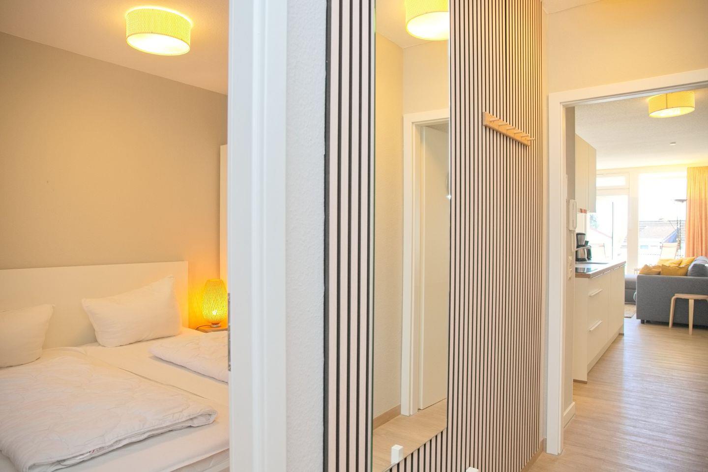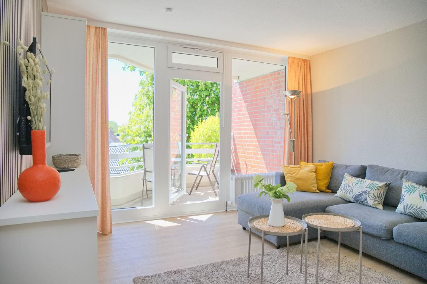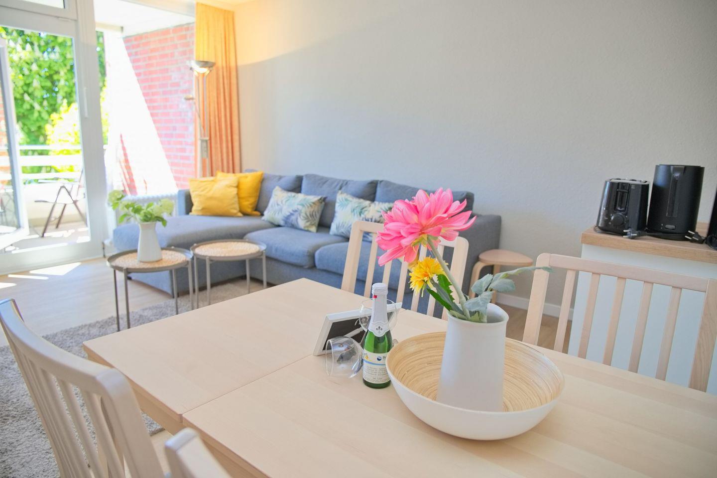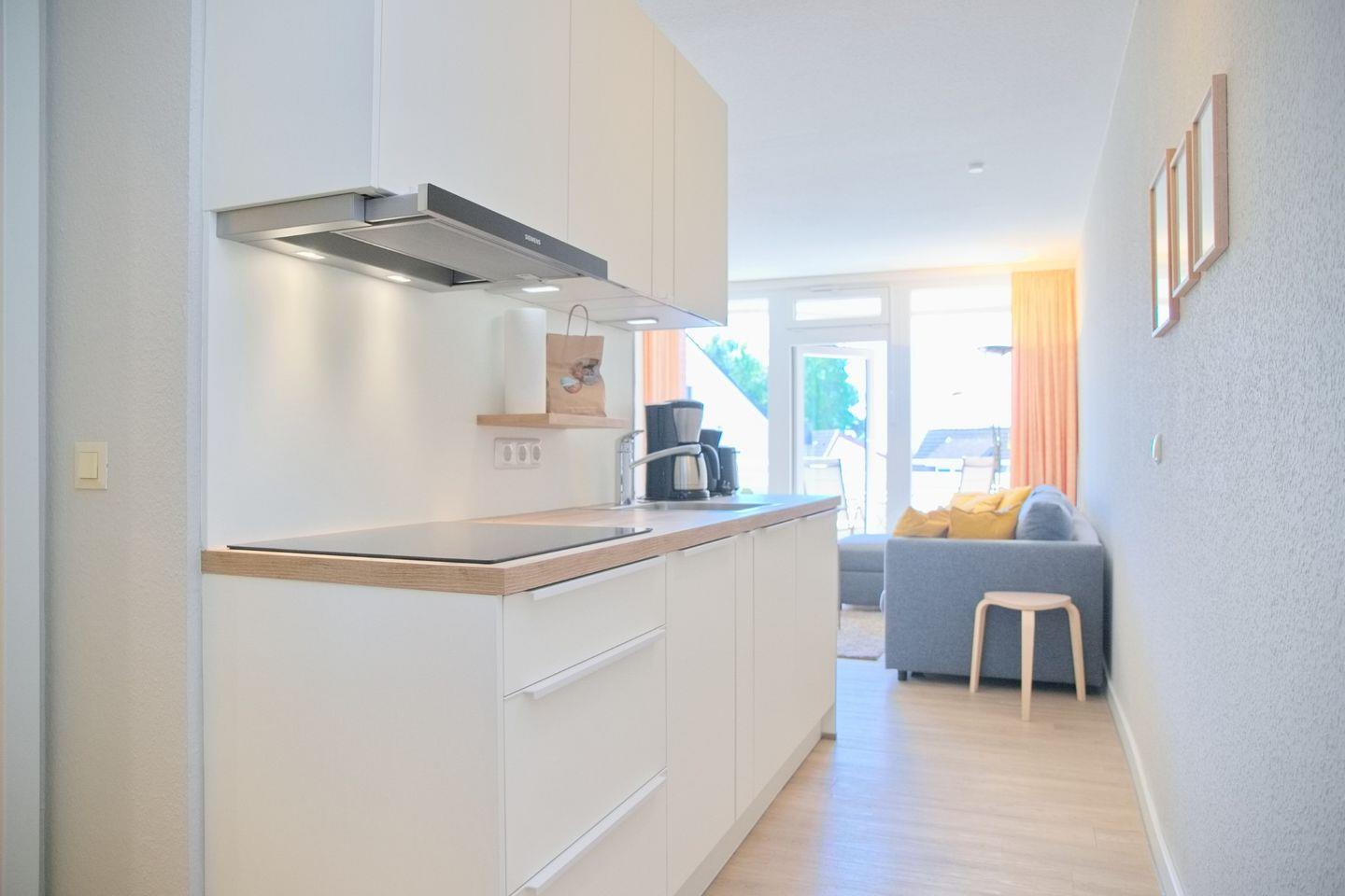 Schöne 2 Zimmerwohnung in der 2. Etage nur 80 Meter vom Meer entfernt. möblierter Balkon mit Teilseeblick. Stellplatz in der Tiefgarage inkl.