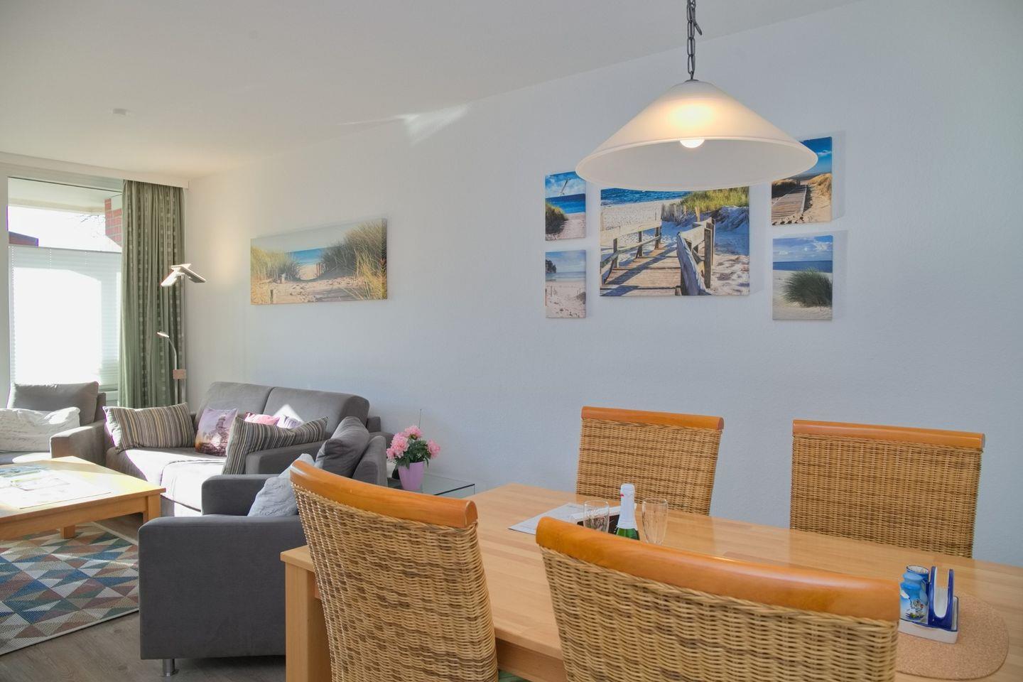 Schöne 2 Zimmerwohnung mit WLAN und möbliertem Balkon in Südwestlage, 80 Meter vom Meer entfernt. Ihre Fellnase ist herzlich Willkommen.