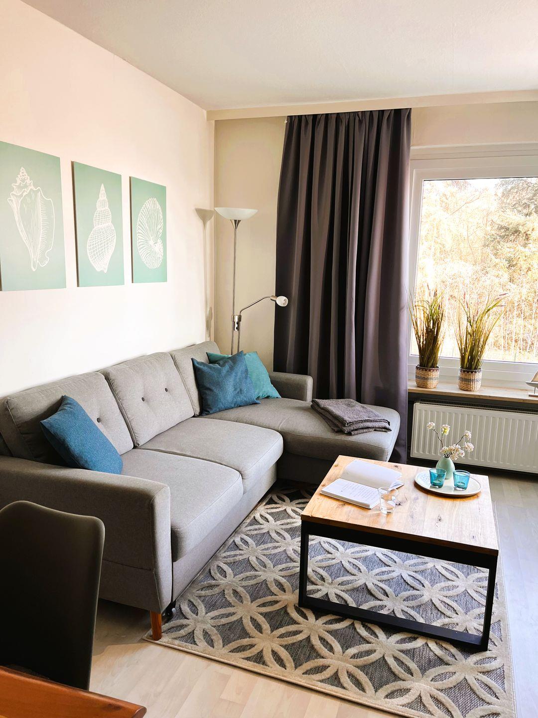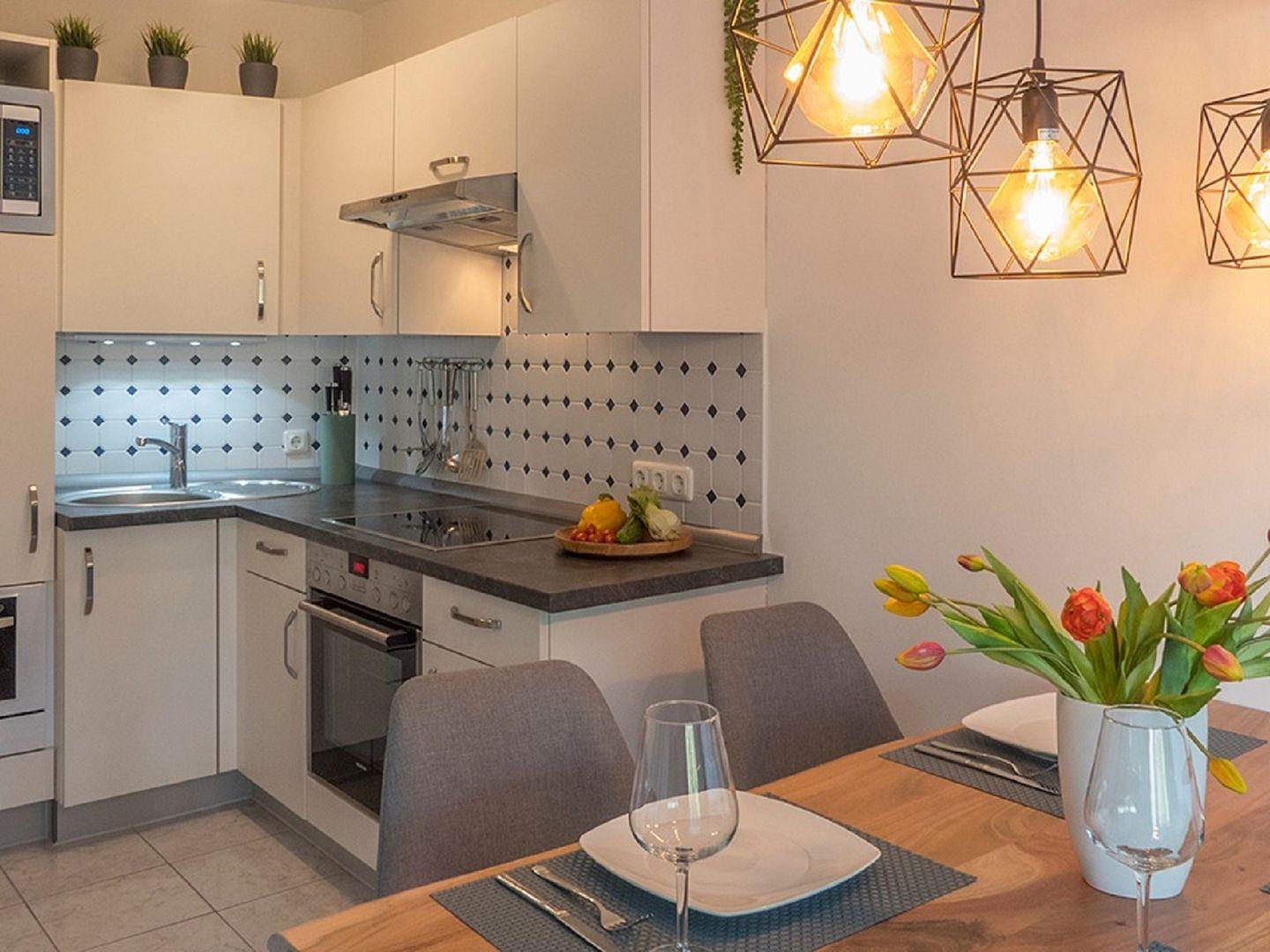 Herzlich Willkommen in dieser Modernen 2 Zimmer Ferienwohnung. Durch den Eingang gelangen Sie in den Flur, wo sich auf der linken Seite ein großer Einbauschrank befindet und ausreichend Platz für Ihre Sachen bietet. Zu Ihrer Rechten gelangen Sie in das helle neu renovierte Duschbad. Vom Flur gelangen Sie ins großzügige Wohnzimmer, hier finden Sie ein ausziehbares Schlafsofa, einen 50 Zoll smart TV und einen Blue Ray Player für lauschige Abende. Sollten Sie Musik bevorzugen, steht Ihnen eine Stereoanlage mit CD-Player zur Verfügung, die Sie auch bei einem gemütlichen Abendessen im offenen Essbereich zur Küche nutzen können oder beim zubereiten Ihrer Lieblingsspeisen in der zum Wohnraum offen gehaltenen Einbauküche. Die ist mit allem ausgestattet was das Herz begehrt, wie zum Beispiel: einem Cerankochfeld, einem Backofen, einem Kühlschrank mit kleinem Eisfach, einer Mikrowelle, einem kleinen Geschirrspüler, einer Kaffeemaschine, einem Wasserkocher, einem Toaster und einem Eierkocher.