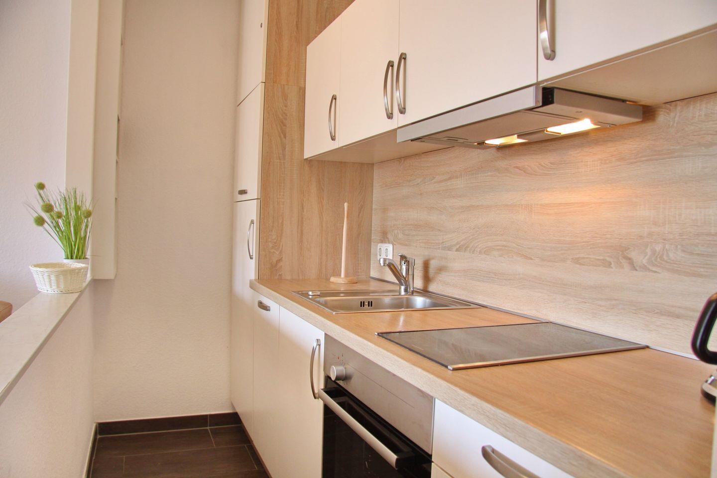 Sehr schöne 2-Zimmer-Wohnung in der 3. Etage mit möbliertem Balkon in Südwestrichtung mit Markise und Teilseeblick.