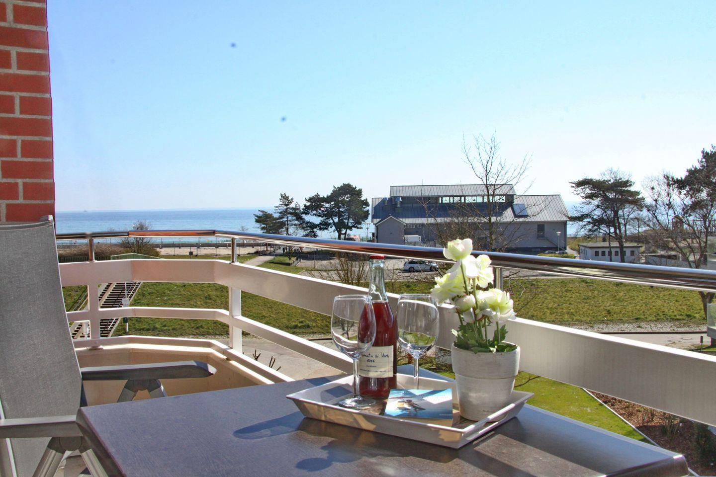 Schöne 2-Zimmer-Wohnung mit Balkon, WLAN und Teilseeblick, nur wenige Schritte vom Meer in Grömitz entfernt.