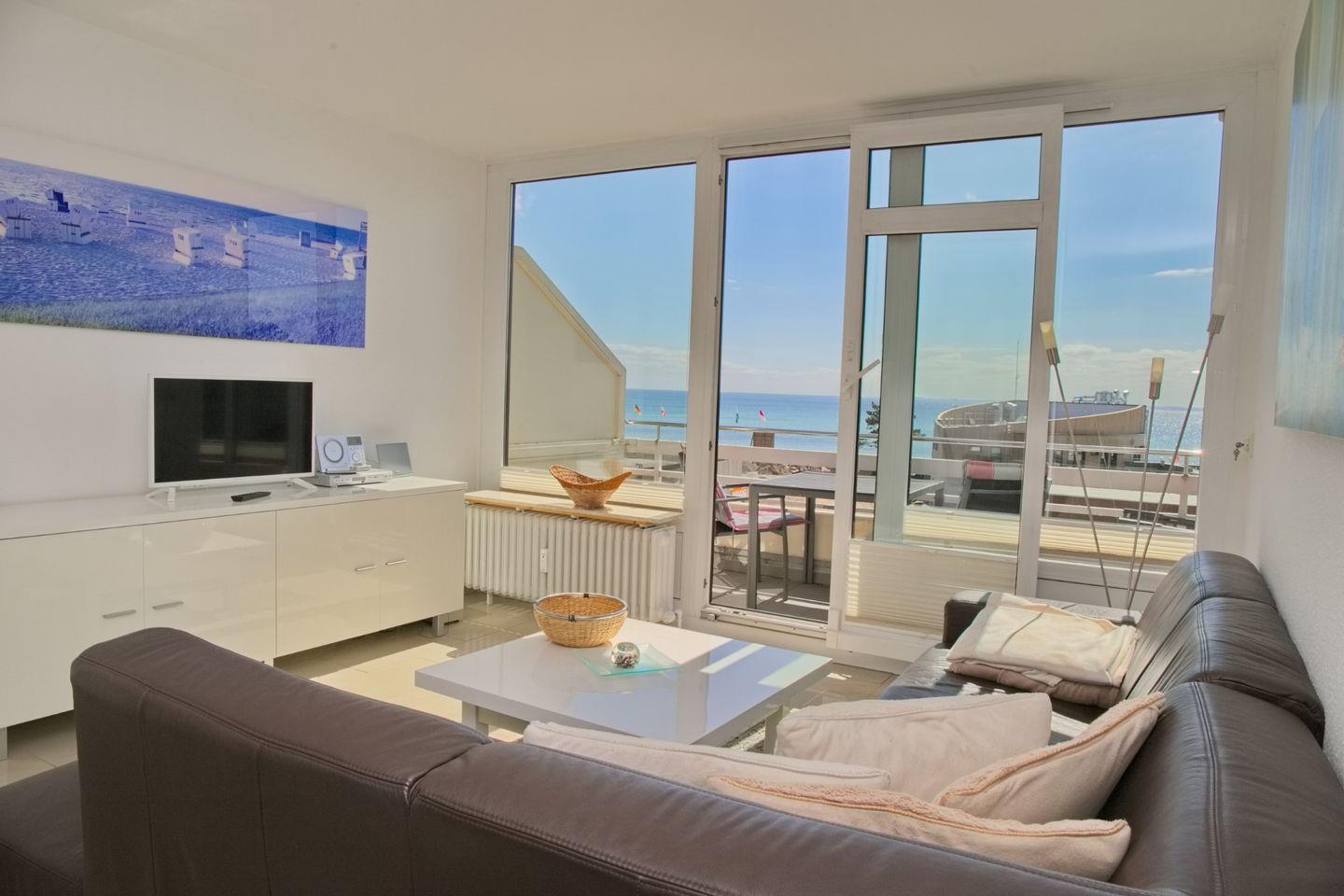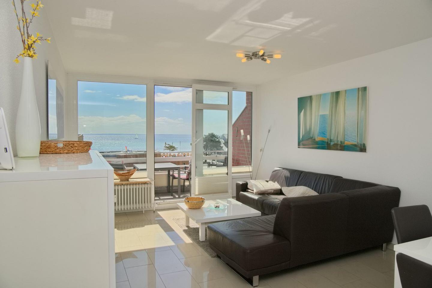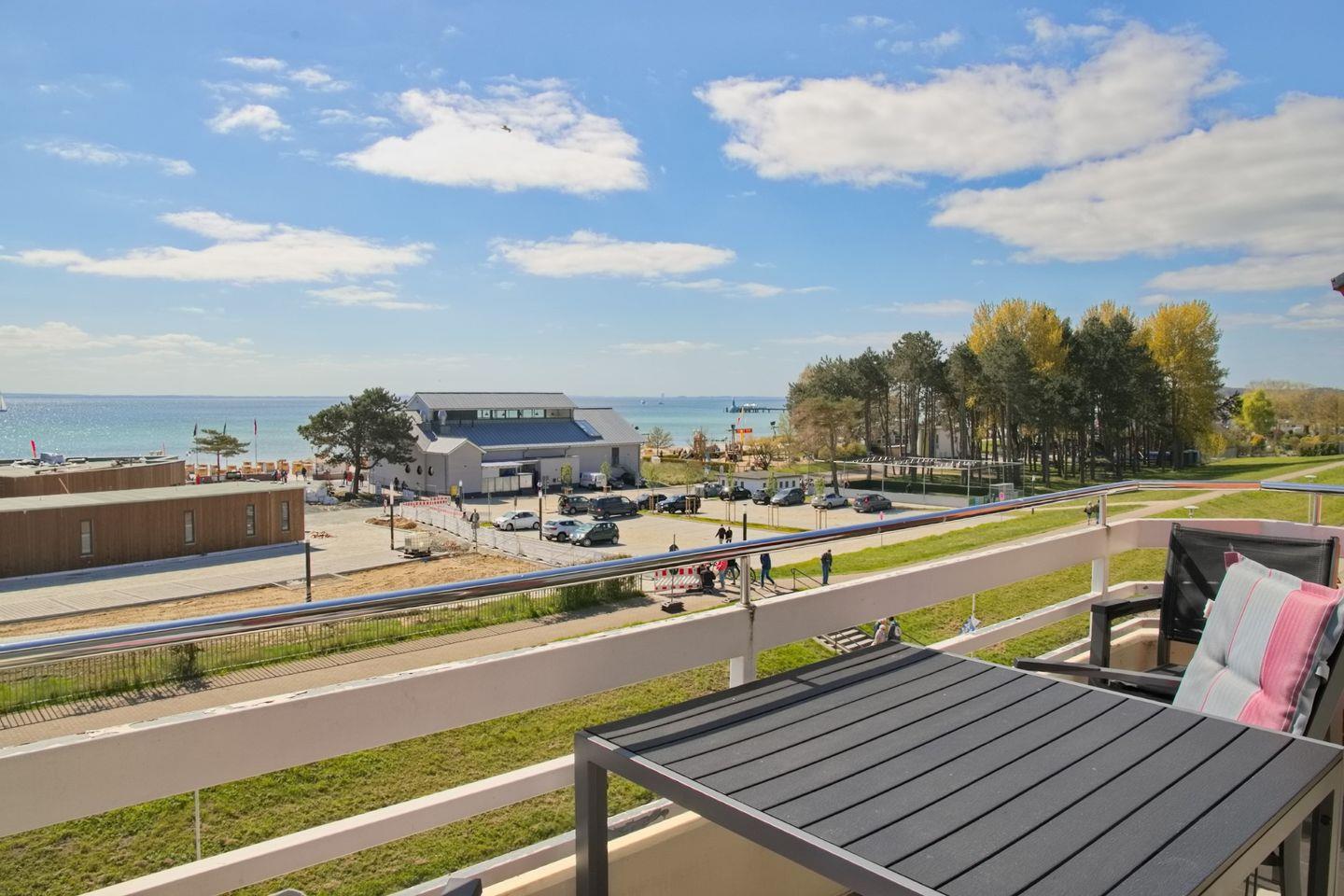 Moderne Ferienwohnung mit traumhaftem Seeblick, Balkon, kostenlosem WLAN und Garage in Grömitz, direkt hinter dem Deich gelegen.