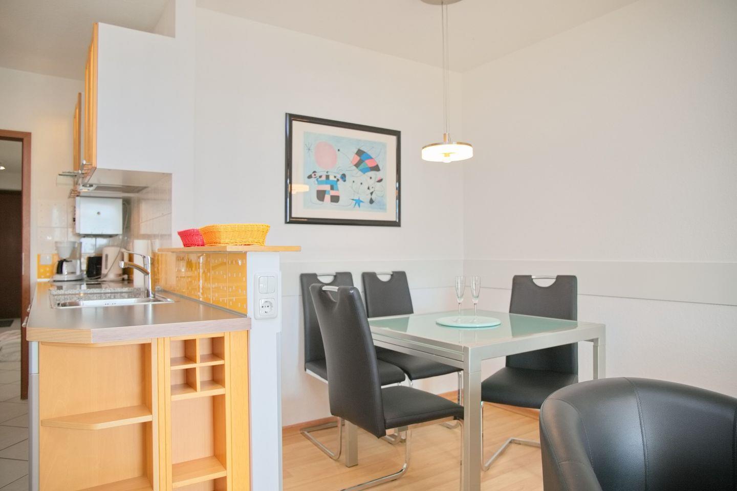 Moderne 2-Zimmer-Wohnung in bester Lage in der 3. Etage mit möbliertem Balkon in Südlage. Im Wohnzimmer gibt es eine Lederschlafcouch für die 2 Personen, einen großen Flatscreen mit 3 D Brillen, einem Radio, und den Essbereich mit 4 Stühlen von dem Sie den Urlaubstag mit einem ausgiebigen Frühstück starten können. Die offene Küchenzeile ist mit einem Ceranfeld mit Backofen, Kühlschrank mit Gefrierfach, Geschirrspülmaschine, Mikrowelle, Kaffeemaschine, Wasserkocher und Toaster ausgestattet. Im behaglichem Schlafzimmern befinden sich ein Doppelbett, zwei Nachttische und ein Kleiderschrank. Die Wohnung verfügt über ein helles Duschbad/WC.