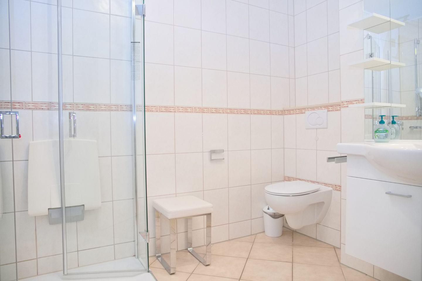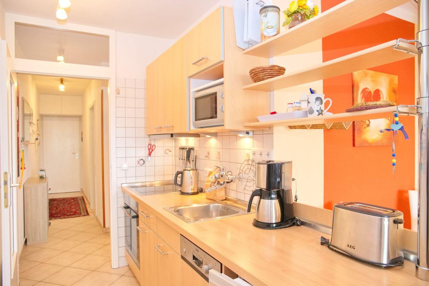 Sehr schöne 2-Zimmer-Wohnung in der 3. Etage in der gepflegten Appartementanlage Belvedere mit möbliertem Balkon in Südrichtung, mit wunderschönem Meerblick und elektrischer Markise. Im Wohnzimmer gibt es eine neue hochwertige Couch, auf der man zum Bett verwandelt auch bequem schlafen kann, zwei Sessel, einen Hocker, eine Wohnwand, ein Smart TV mit Flat Screen, DVD-Player mit USB-Anschluss sowie kostenloses W-LAN und Telefon. Im Schlafzimmer befinden sich ein Doppelbett, zwei Nachttische, ein zusätzlicher Flat Screen TV und ein Kleiderschrank mit Safe. Die vielen verschiedenen Lichtquellen ergänzen die Ausstattung und sorgen für behagliche Wohlfühlatmosphäre. An dem hellen und einladenden Essbereich mit 4 Stühlen können Sie den Urlaubstag mit einem ausgiebigen Frühstück starten. Bei jeder Mahlzeit können Sie von hier aus das Meer sehen. Die offene Küchenzeile ist mit einem Ceranfeld mit Backofen, einem Kühlschrank mit Gefrierfach, einer Spülmaschine, einer Mikrowelle, einer Kaffeemaschine, einem Wasserkocher und einem Toaster ausgestattet. Einige weitere Haushaltshelfer ergänzen diese Ausstattung. Hier ist einfach an alles gedacht. Die Wohnung verfügt über ein größeres, neues Duschbad/WC mit großzügigem Waschtisch, Haarfön, Handtuchheizkörper und Dusche mit ganz niedrigem Einstieg ausgestattet mit einem großen Haltegriff nebst Duschhocker.