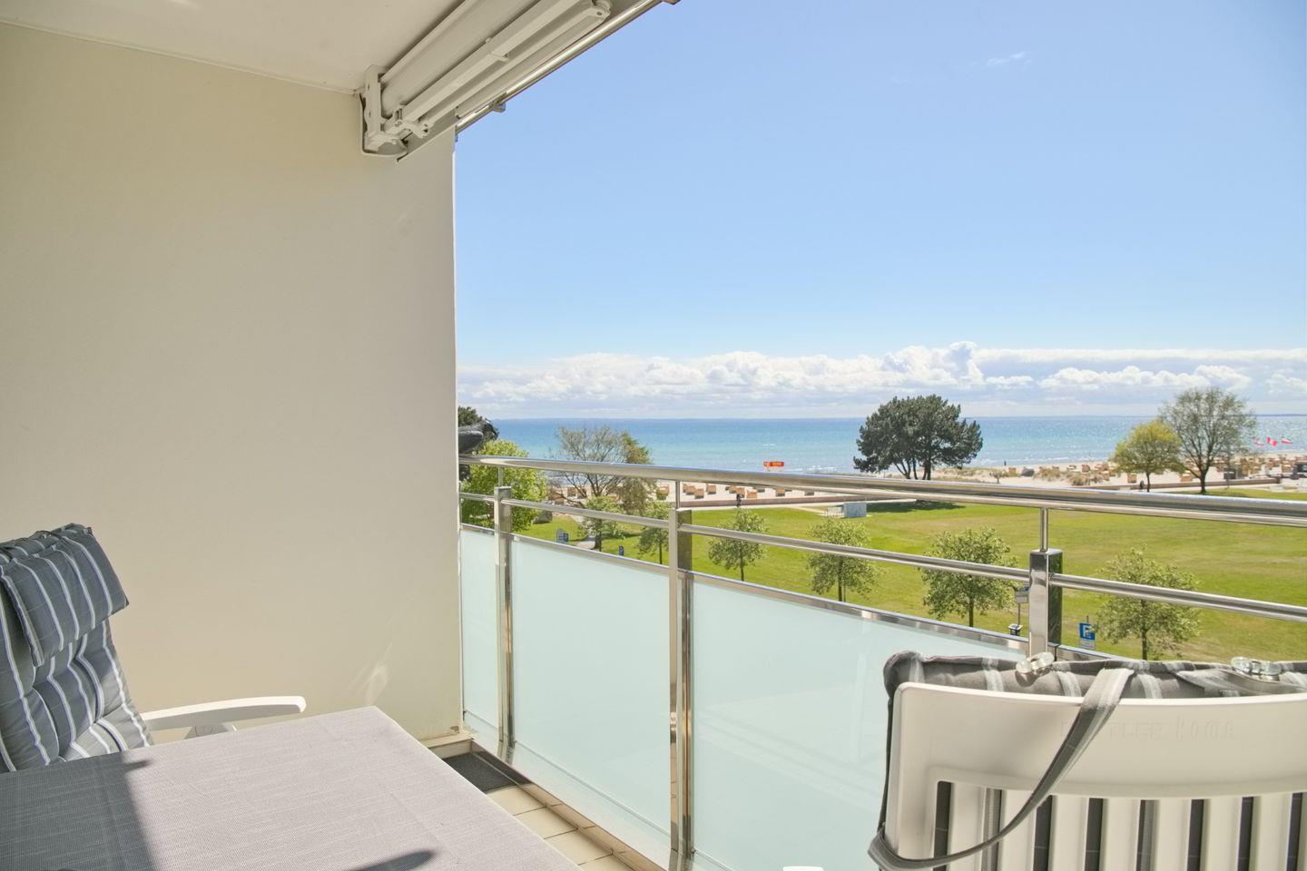 Charmante 2-Zimmer-Wohnung mit Balkon und Meerblick, 90 m vom Strand in Grömitz.