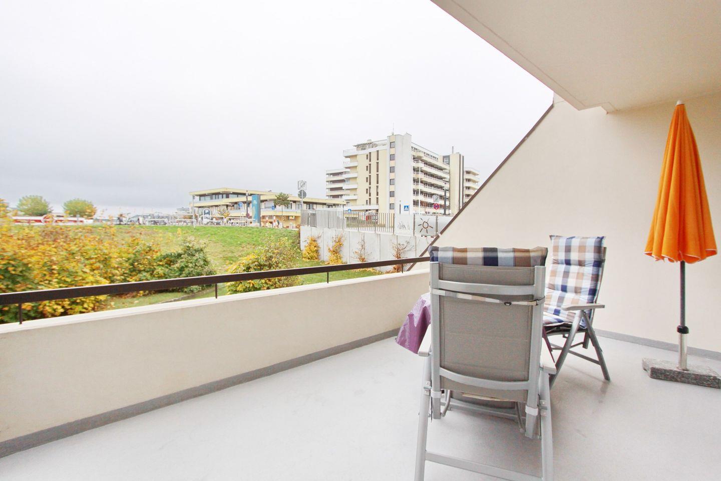 Der Balkon ist zur Deich/Seeseite ausgerichtet.