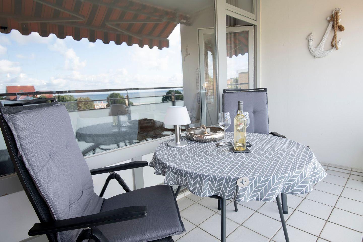 Moderne 2 Zimmer Ferienwohnung mit Meerblick und möblierten Süd- Westbalkon in direkter Strandlage.
