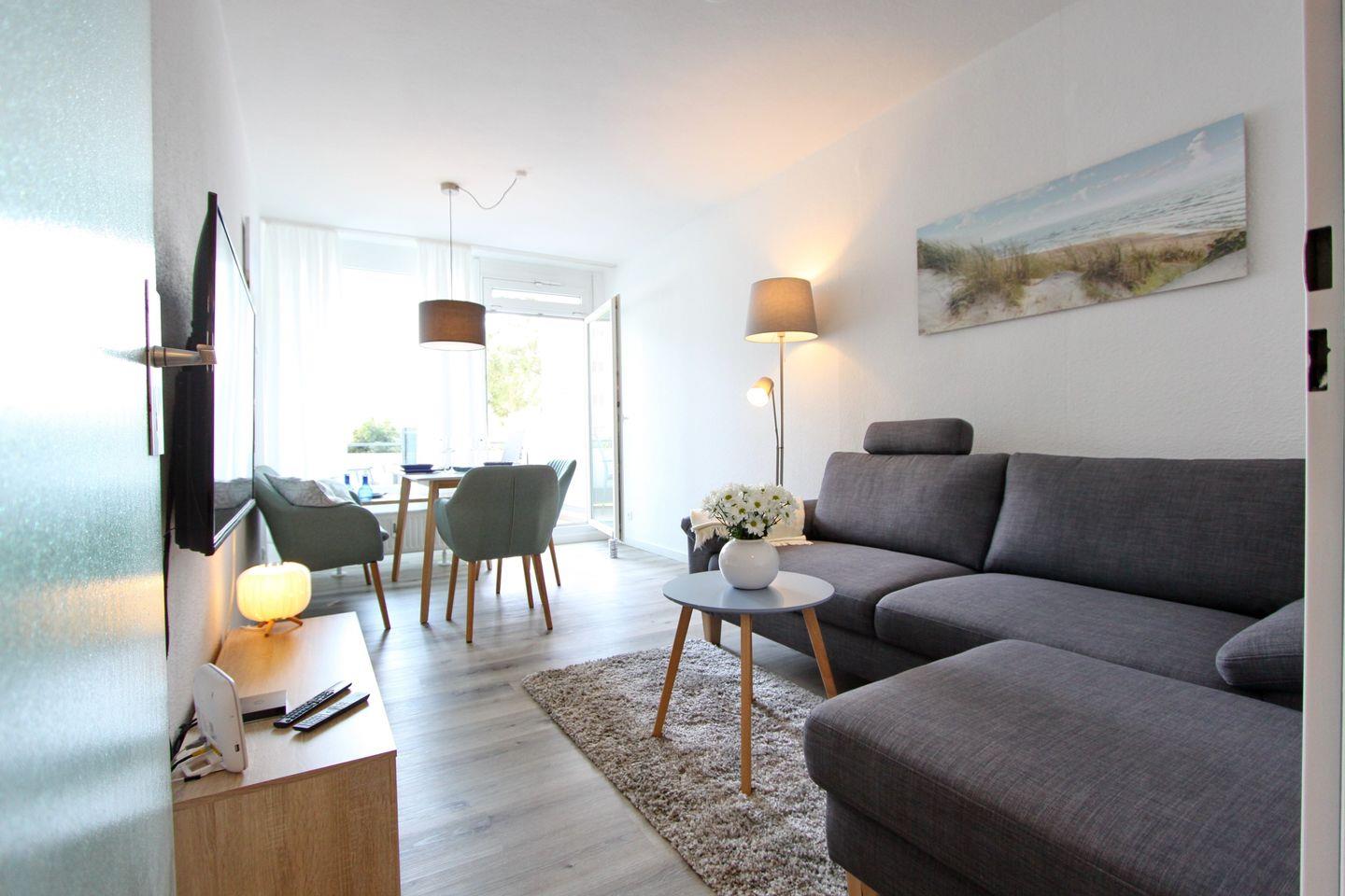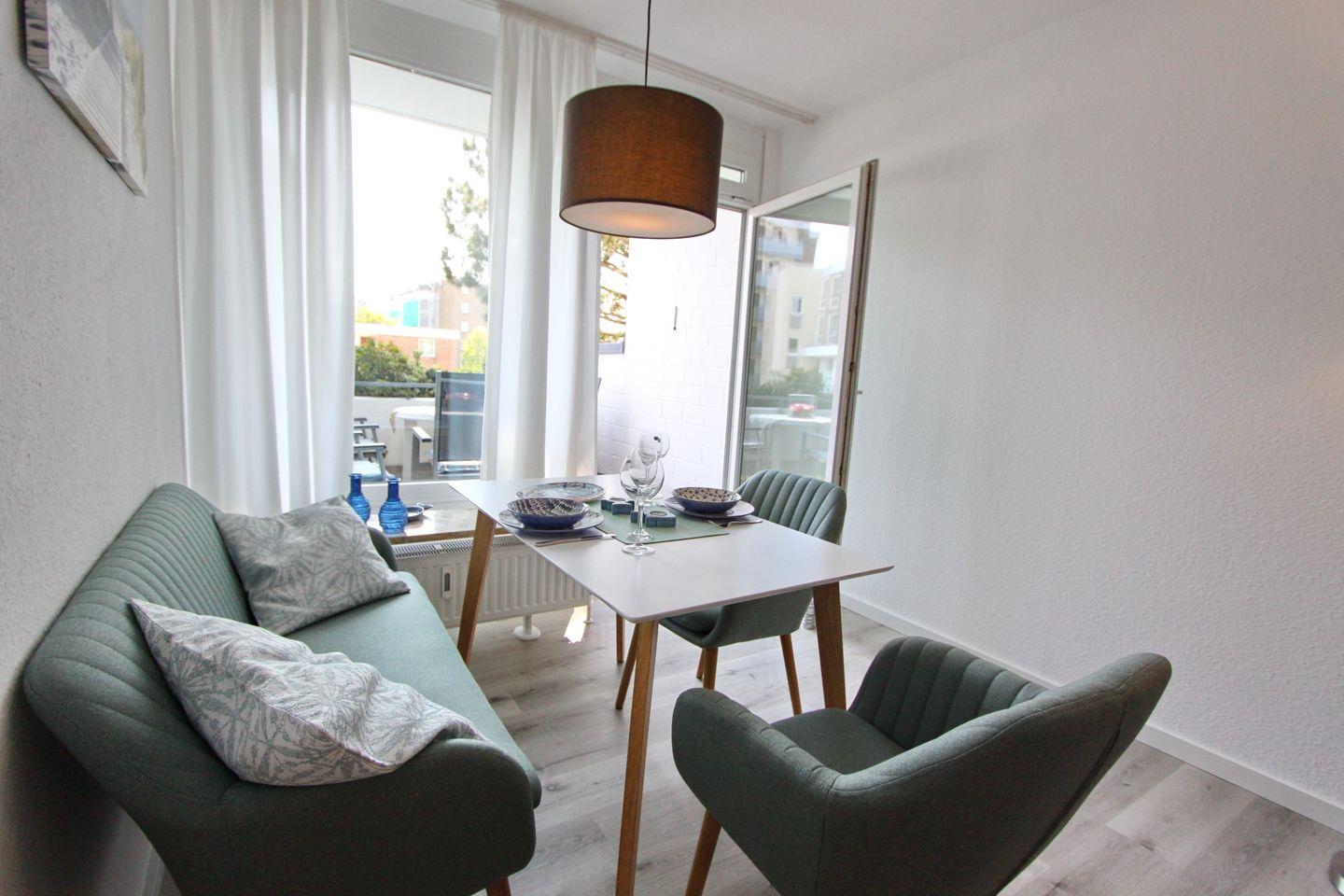 Moderne 3-Zimmerwohnung mit Balkon in Süd/Westlage, nur 100 m vom Strand und der Promenade in Grömitz entfernt.