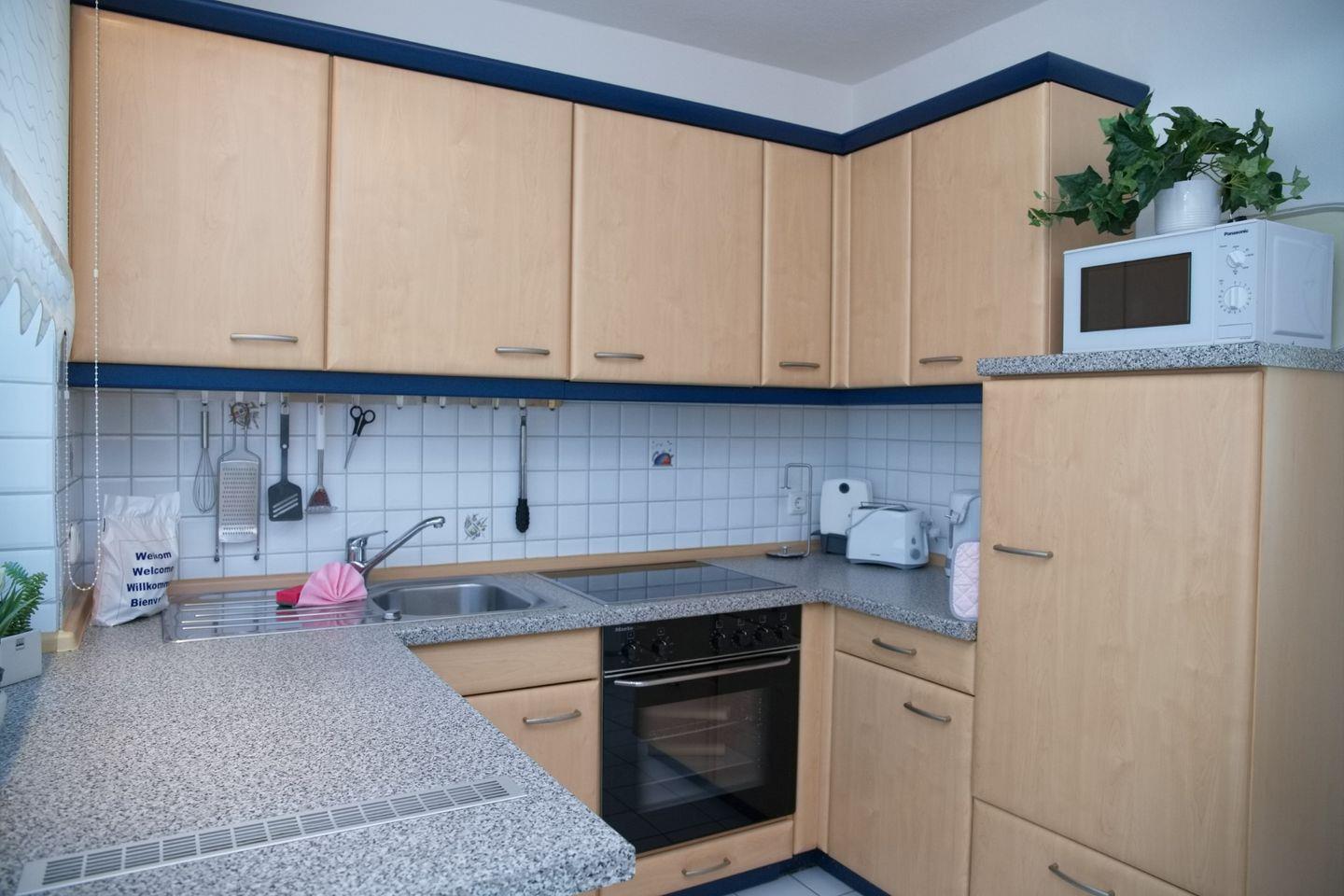 Die offen gestallte Küche lässt das Hobbykochherz höher schlagen. Neben einem Cerankochfeld, Backofen, Spülmaschine, Mikrowelle und Kühlschrank mit 3* Gefrierfach finden Sie außerdem weitere nützliche Küchenhelfer.