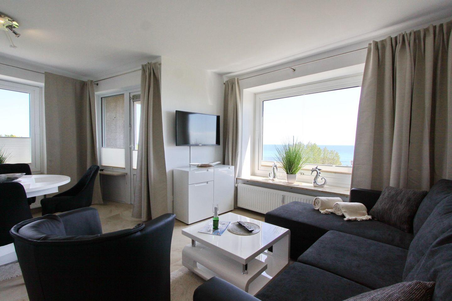 Moderne Ferienwohnung mit Balkon und traumhaftem Ostseeblick in Grömitz, nur wenige Schritte vom Strand entfernt.