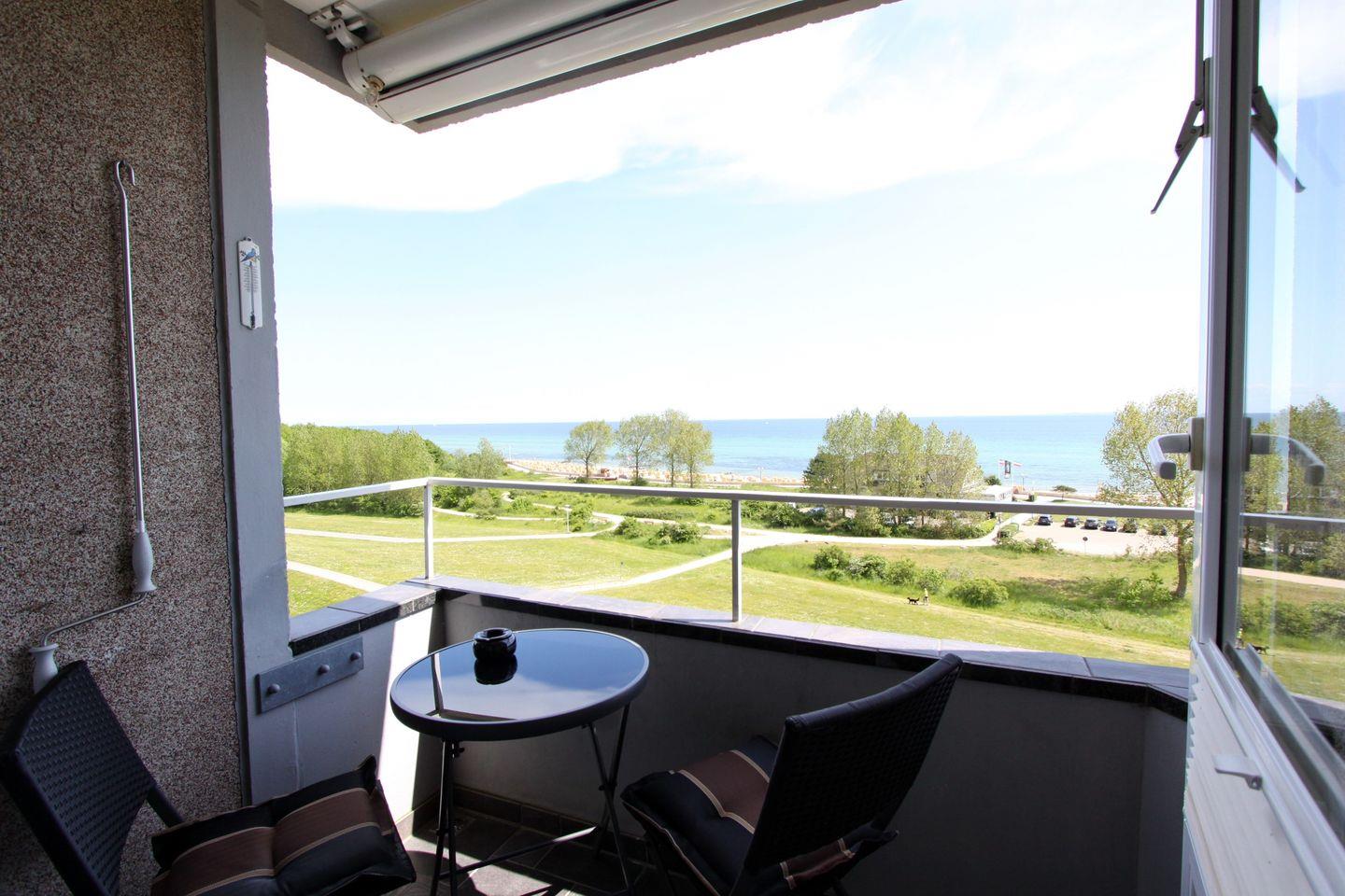 Der möblierte Balkon garantiert Meeresrauschen! Schauen Sie über die Lübecker Bucht und genießen den Weitblick!