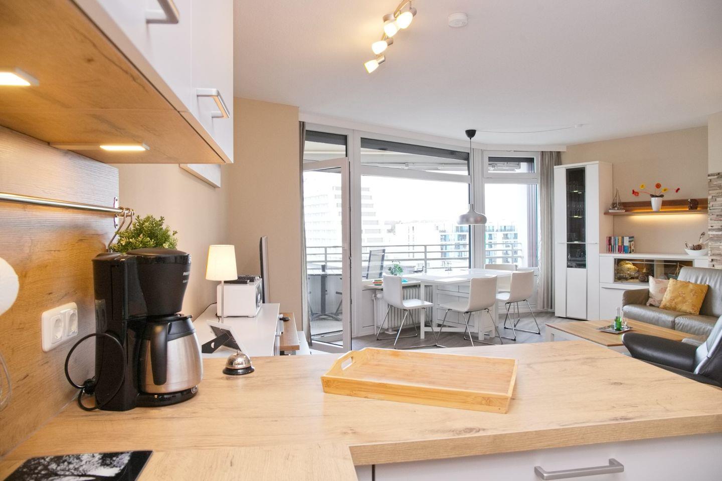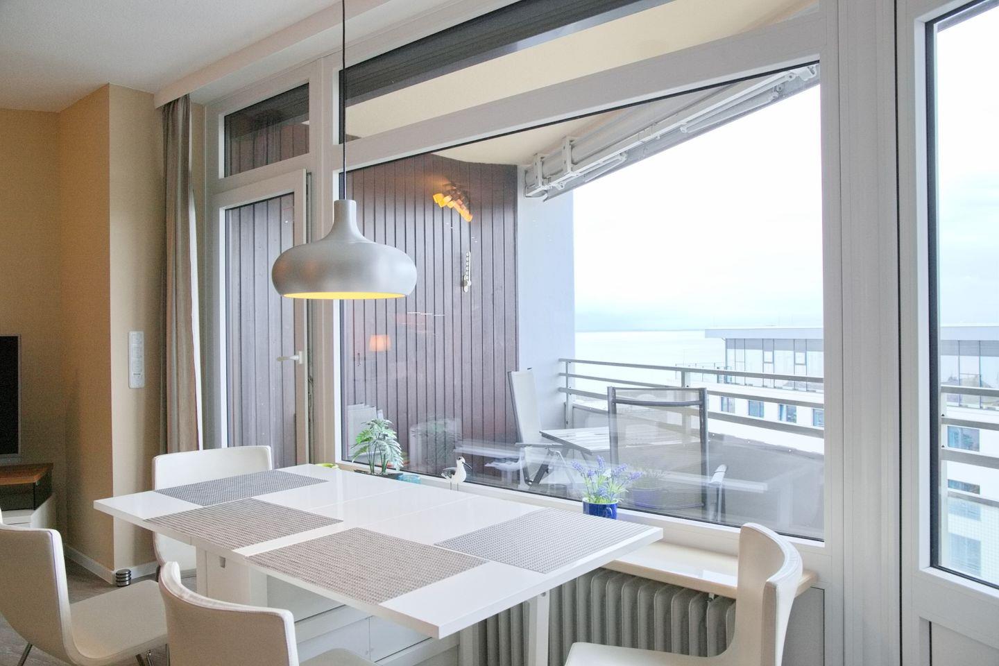 Sehr gepflegte, gemütliche Ferienwohnung mit möblierten Balkon und Teilseeblick. Nur wenige Meter vom Strand und der Promenade mit der Seebrücke entfernt.