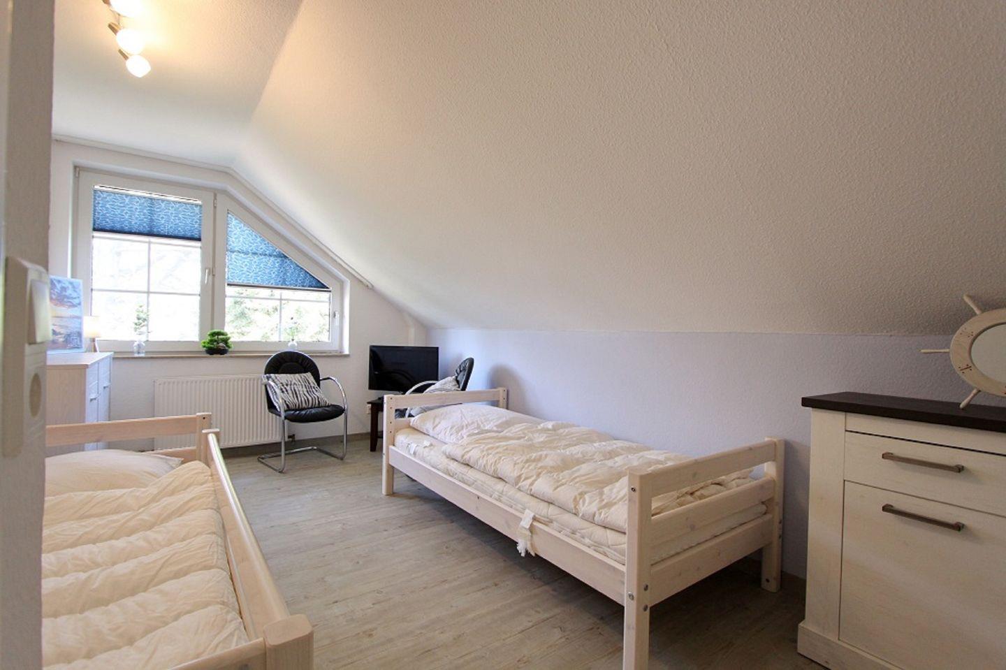 Das zweite Schlafzimmer verfügt über zwei Einzelbetten (90x200cm), Kommode und Flach TV mit Sitzecke.