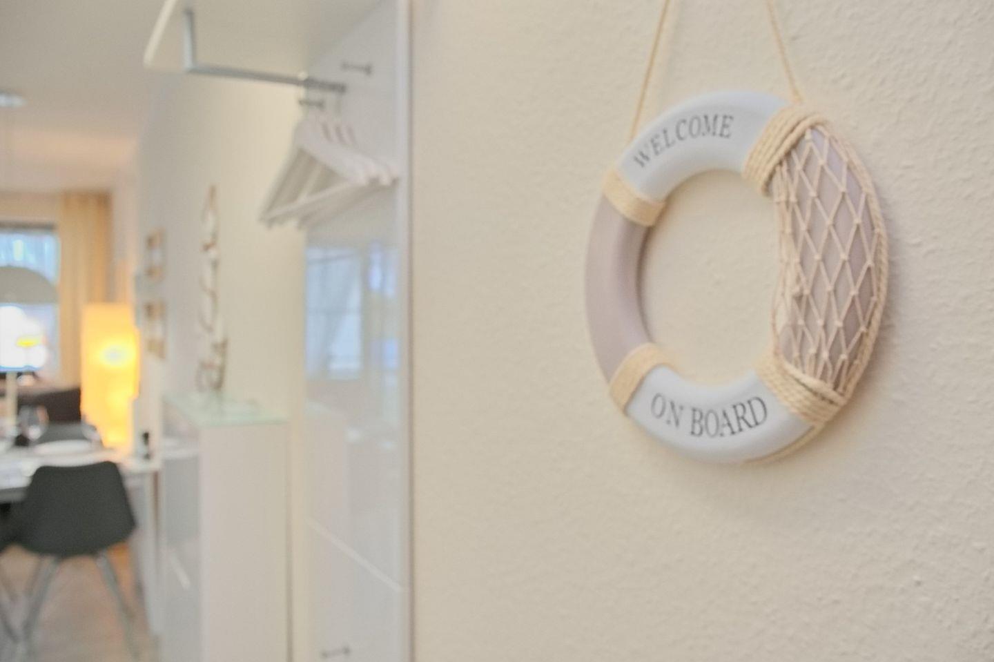 Die frisch renovierte Ferienwohnung empfängt Sie mit einem kleiner Diele mit Platz für Ihre Garderobe.