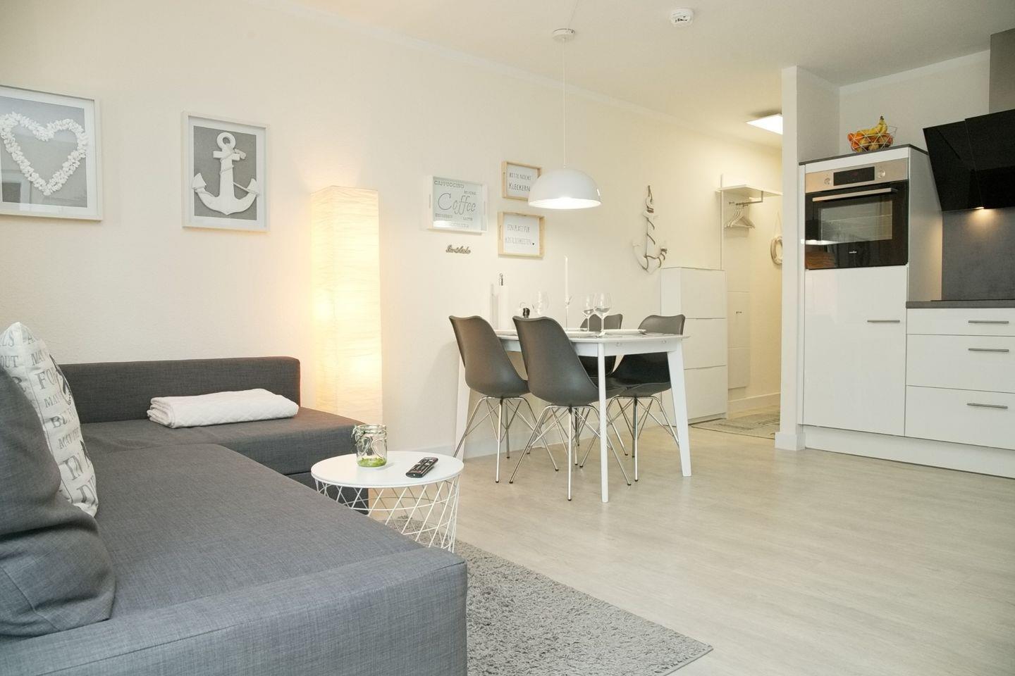 Moderne Ferienwohnung mit Balkon und WLAN, nur 100 m vom Strand Grömitz entfernt, ideal für entspannte Urlaubstage.