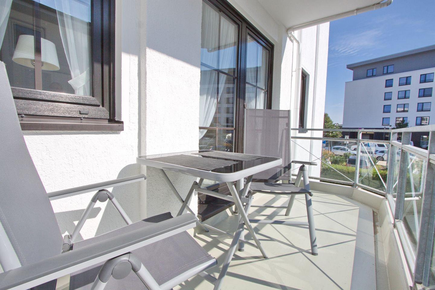 Moderne Ferienwohnung mit möblierten Süd-/ Westbalkon in bester Lage von Grömitz. Der Sandstrand und die Grömitzer Welle liegen direkt vor der Tür.