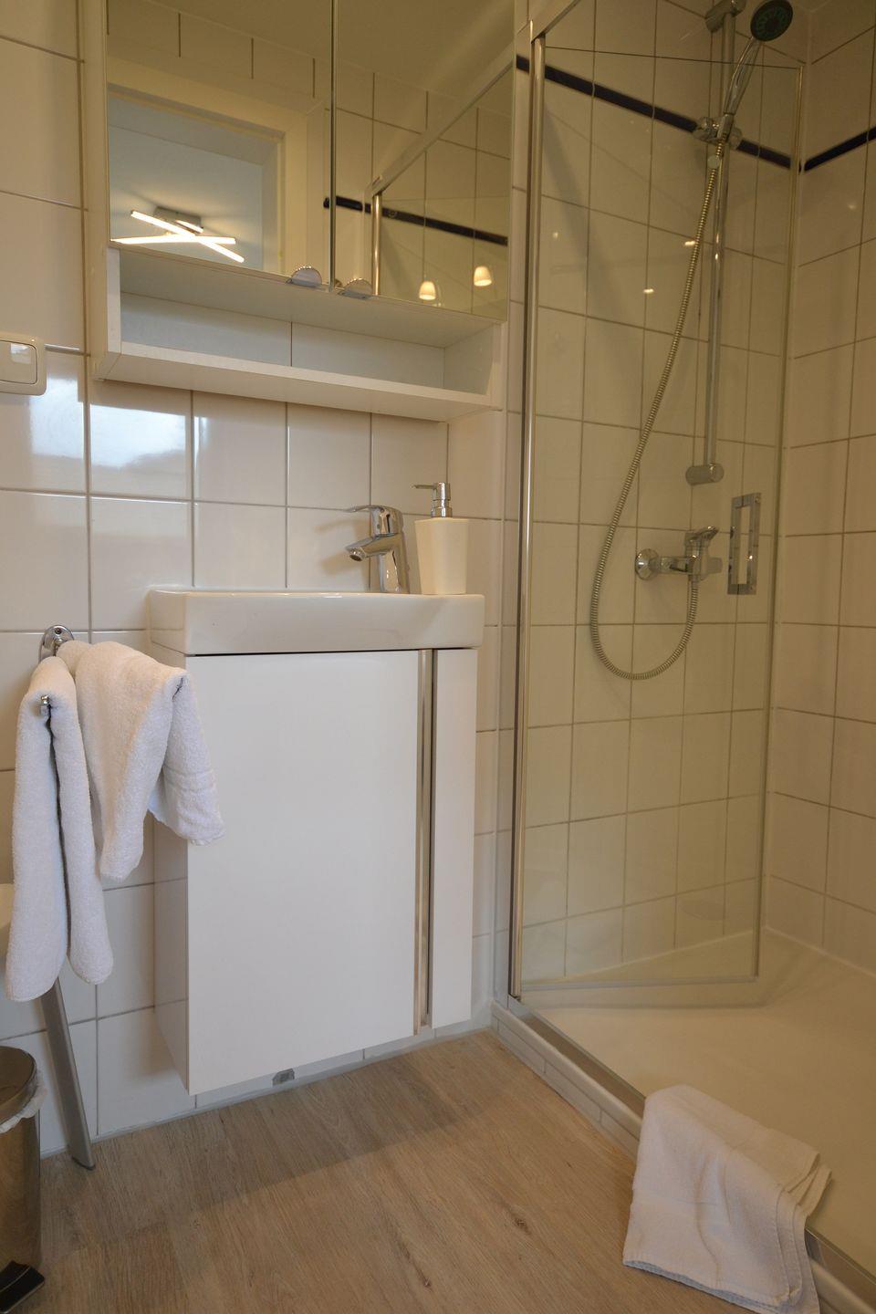 Die Wohnung verfügt über ein Schlafzimmer mit zwei Einzelbetten, ein Badezimmer mit Dusche, eine offene, moderne Küchenzeile und einen gemütlichen Wohnbereich mit einem Sofa, das als Schlafgelegenheit für zwei Personen dient (Wohn- und Schlafzimmer haben richtige Fenster!). Auf Wunsch stellen wir Ihnen gerne kostenfrei ein Kinderbett und einen Hochstuhl zur Verfügung.