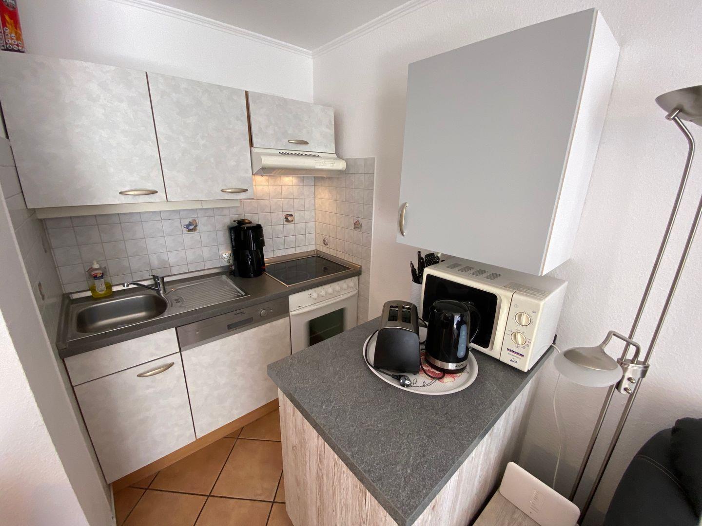 Im Wohnzimmer befinden sich eine großzügige Schlaf-Eckcouch, ein Essplatz für 4 Personen und eine offene Küche, welche mit dem nötigsten für Ihren Aufenthalt ausgestattet ist. Eine Spülmaschine ist selbstverständlich vorhanden.