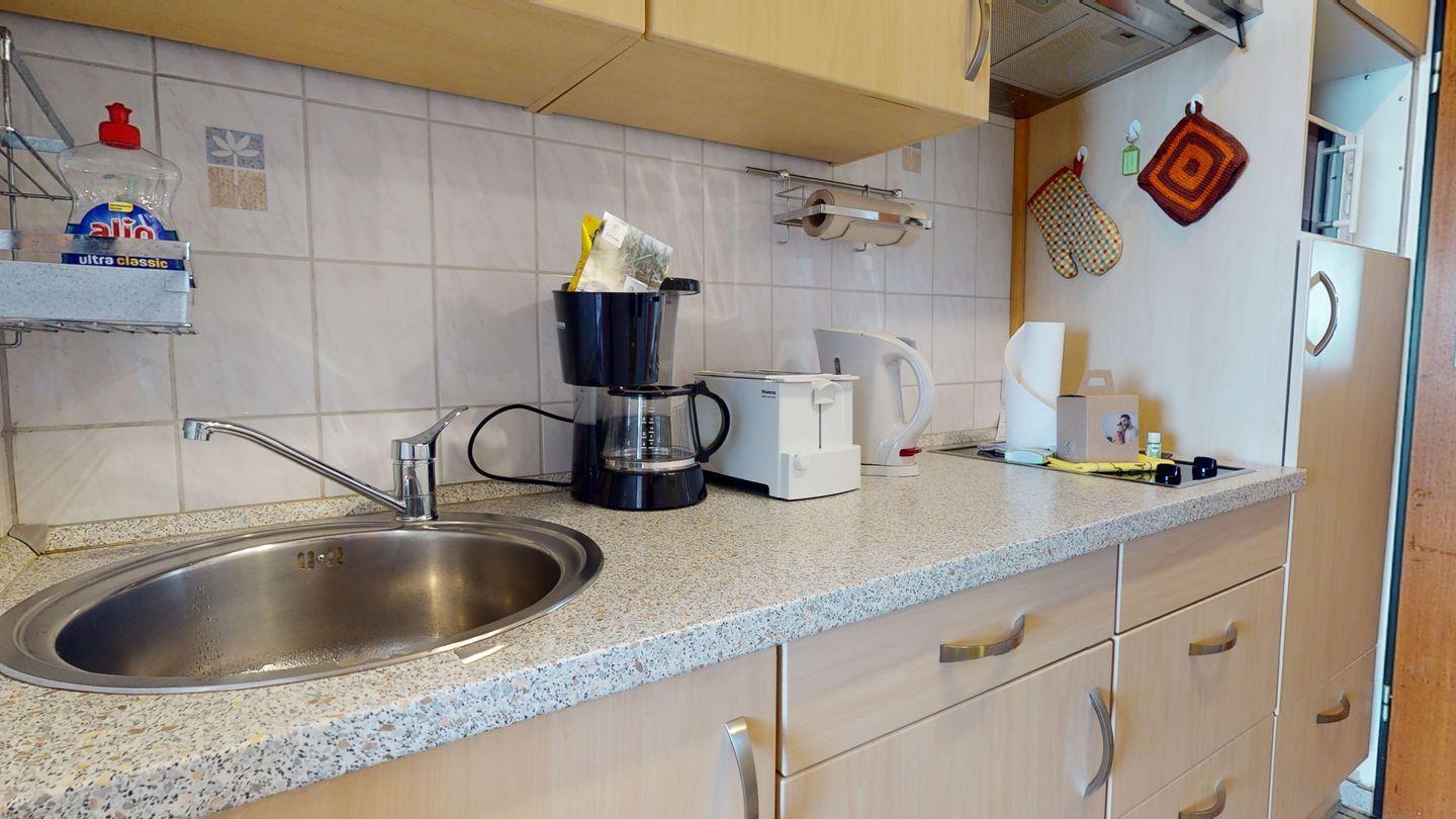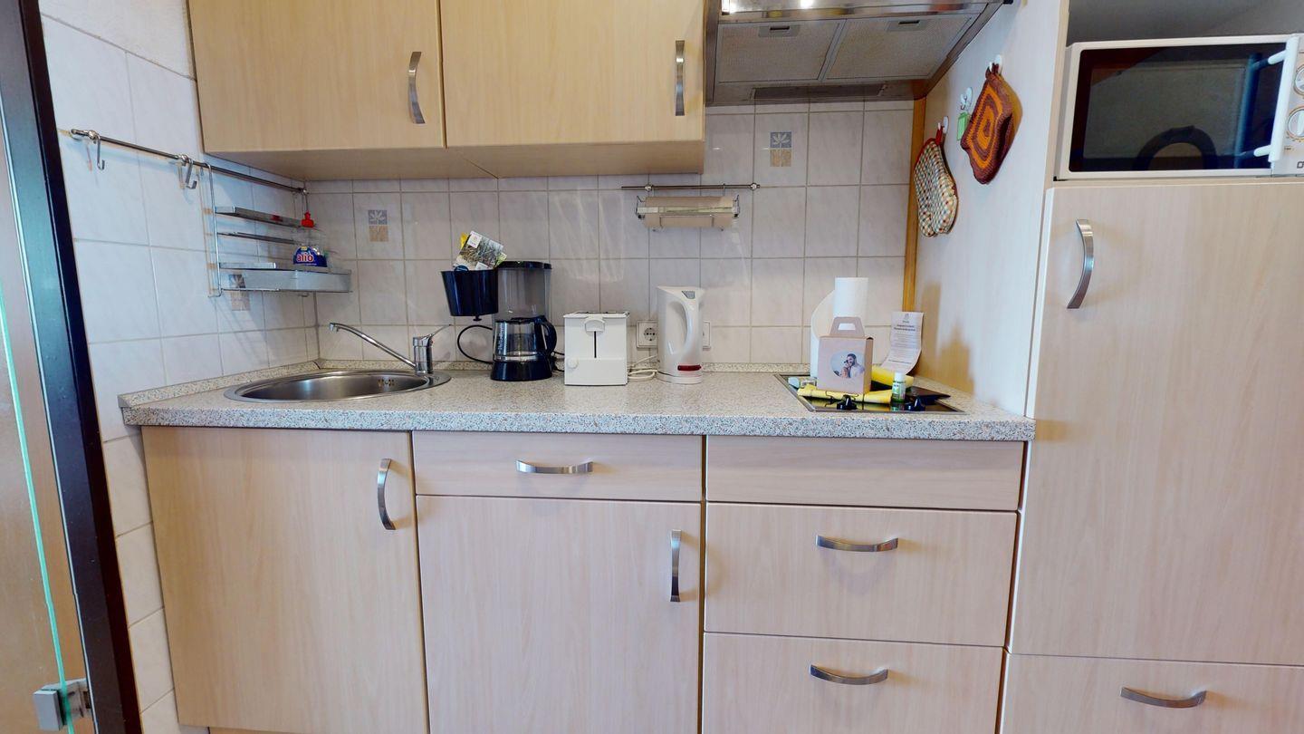 Die Wohnung bietet Platz für zwei Personen, mit einem geschickt integrierten Schrankbett im kombinierten Wohn- und Schlafbereich, das für hohen Komfort sorgt. Eine moderne Küchenzeile und ein stilvolles Duschbad machen den Rückzugsort perfekt für erholsame Tage am Meer.