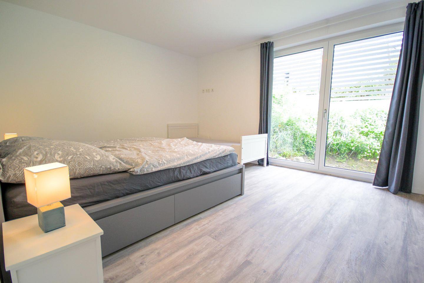 Gemütliche 76m² haustierfreundliche Ferienwohnung mit möblierter Terrasse, zwei Schlafzimmern, offenem Wohn- und Essbereich mit voll ausgestatteter Küchenzeile sowie modernem Bad mit ebenerdiger Dusche – ideal für einen entspannten Urlaub in stilvollem Ambiente für fünf Personen.