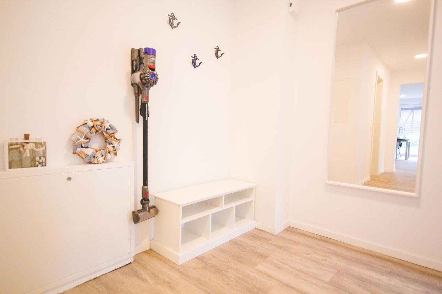 Ein kleiner Flur mit Garderobe und Schuhschrank führt zu den beiden Schlafzimmern. Beide Schlafzimmer sind jeweils mit einem komfortablen Doppelbett sowie einem TV ausgestattet. In einem der Schlafzimmer befindet sich zusätzlich ein Einzelbett. Offene Kleiderschränke und Vorhänge sorgen in beiden Räumen für angenehmen Komfort und machen sie zu idealen Rückzugsorten für erholsame Nächte.
