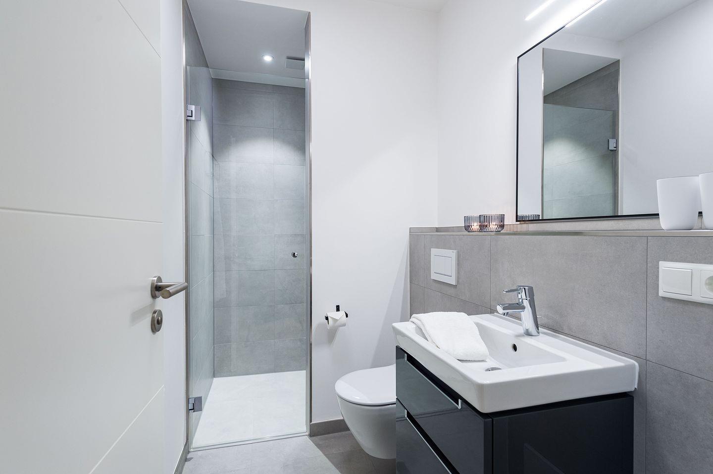 Sie ist für bis zu 4 Personen (der angegebene Preis bezieht sich immer auf 2 Erwachsene und 2 Kinder, extra Personen können ggf. auf Anfrage dazu gebucht werden) buchbar (2 Schlafzimmer mit Doppelbetten 180 x 200 cm) und verfügt über eine gehobene 5-Sterne-Ausstattung: 2 Badezimmer, 1 Sauna, 1 Whirlwanne sowie 1 Terrasse. Die Küche ist komplett ausgestattet und bietet einen großen Esstisch für bis zu 6 Personen. Zudem gibt es einen Geschirrspüler, einen Kühlschrank inkl. Gefrierfach, eine Mikrowelle sowie einen Waschtrockner. Im Wohnbereich erwartet Sie ein 50-Zoll-Smart-TV sowie der Zugang zur großzügigen Terrasse. Die Terrasse ist ebenfalls mit einem Esstisch ausgestattet.