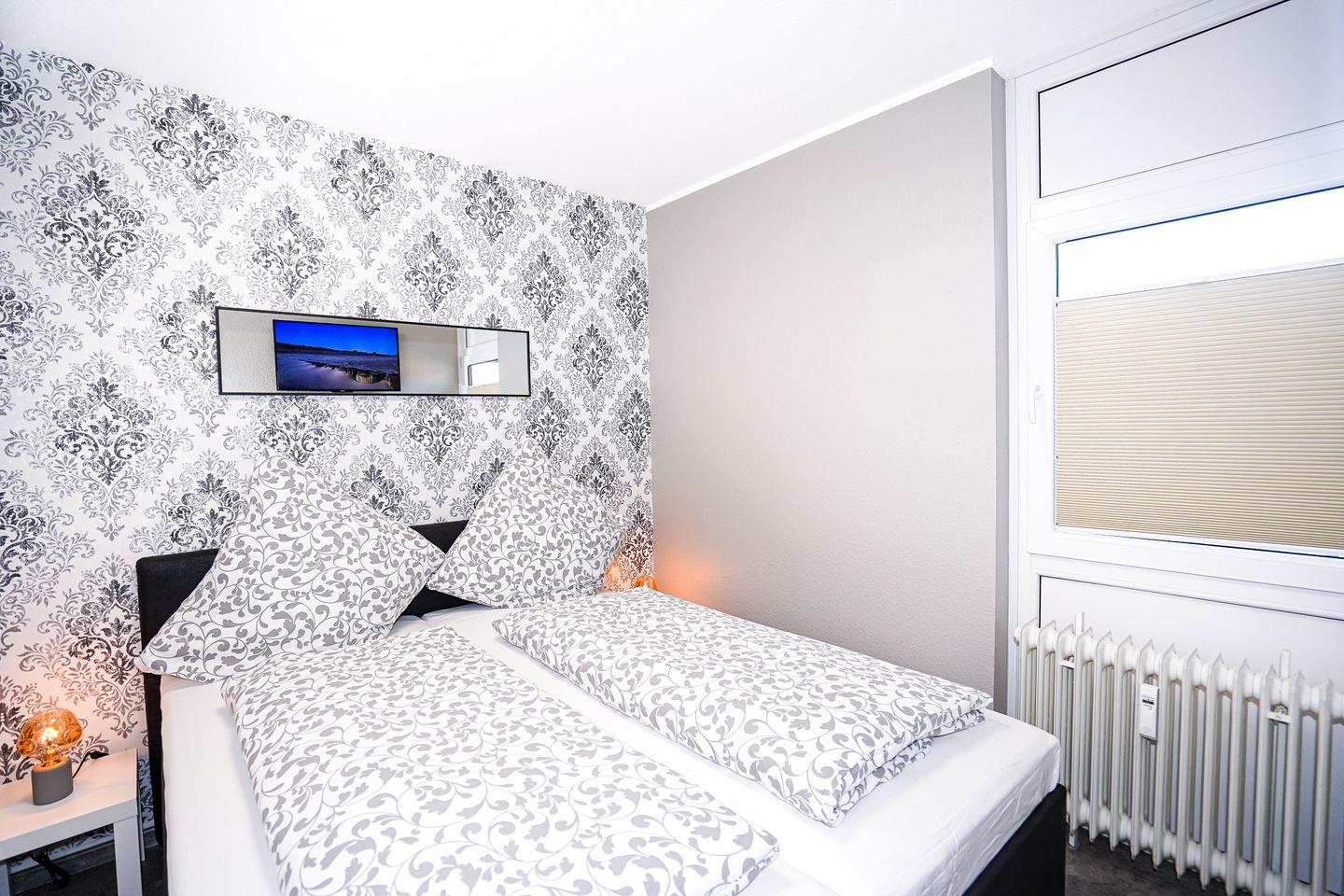 Das Schlafzimmer ist mit einem Boxspringbett 2x 80 x 200, Kleiderschrank und Flachbildfernseher (48 Zoll) ausgestattet.