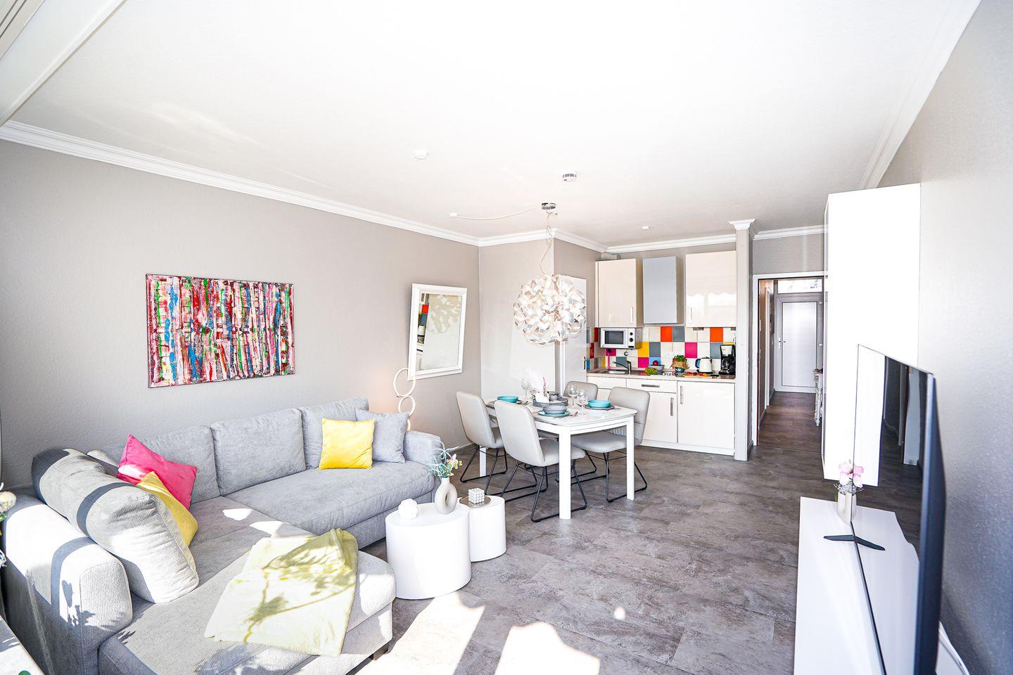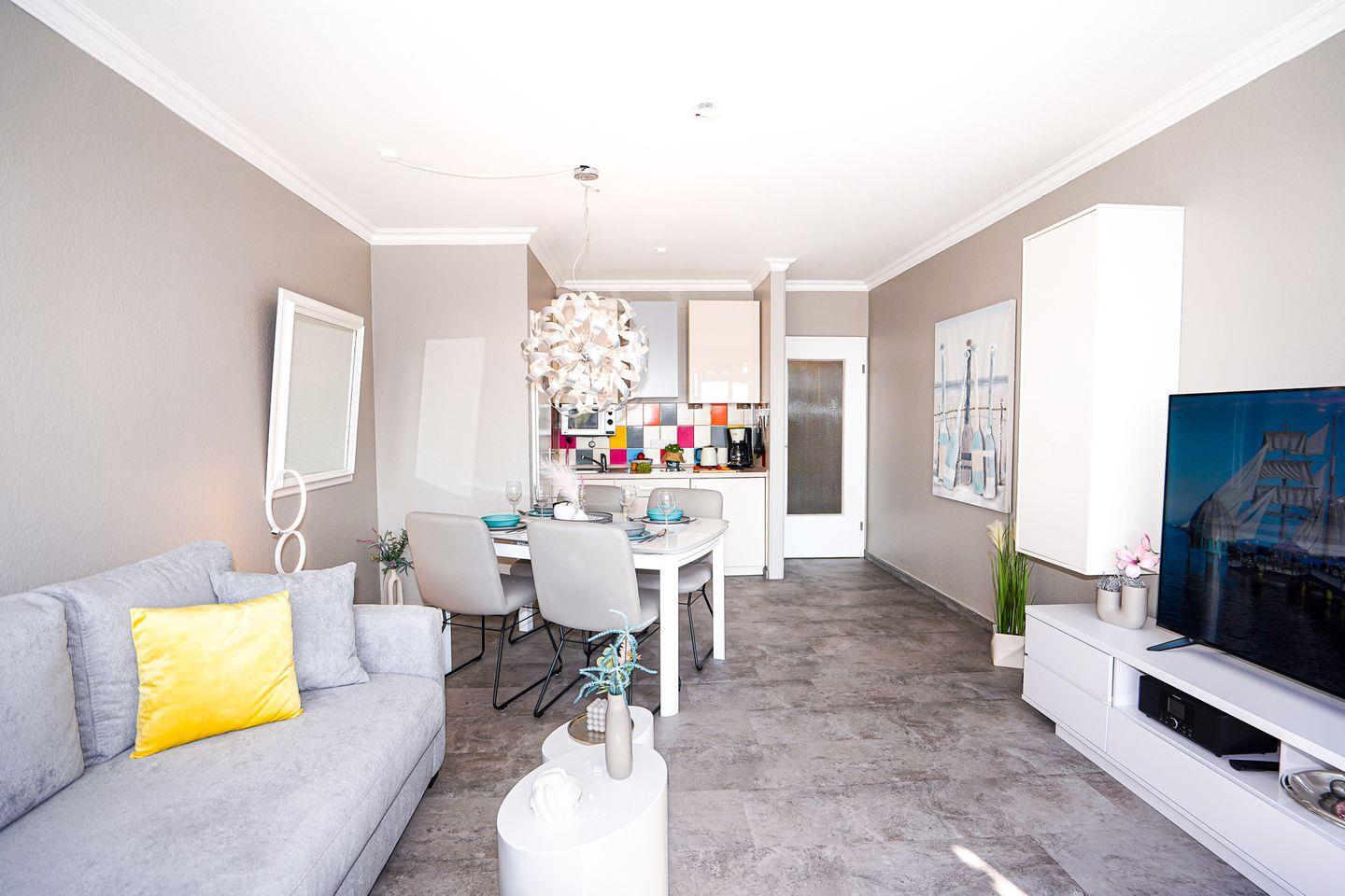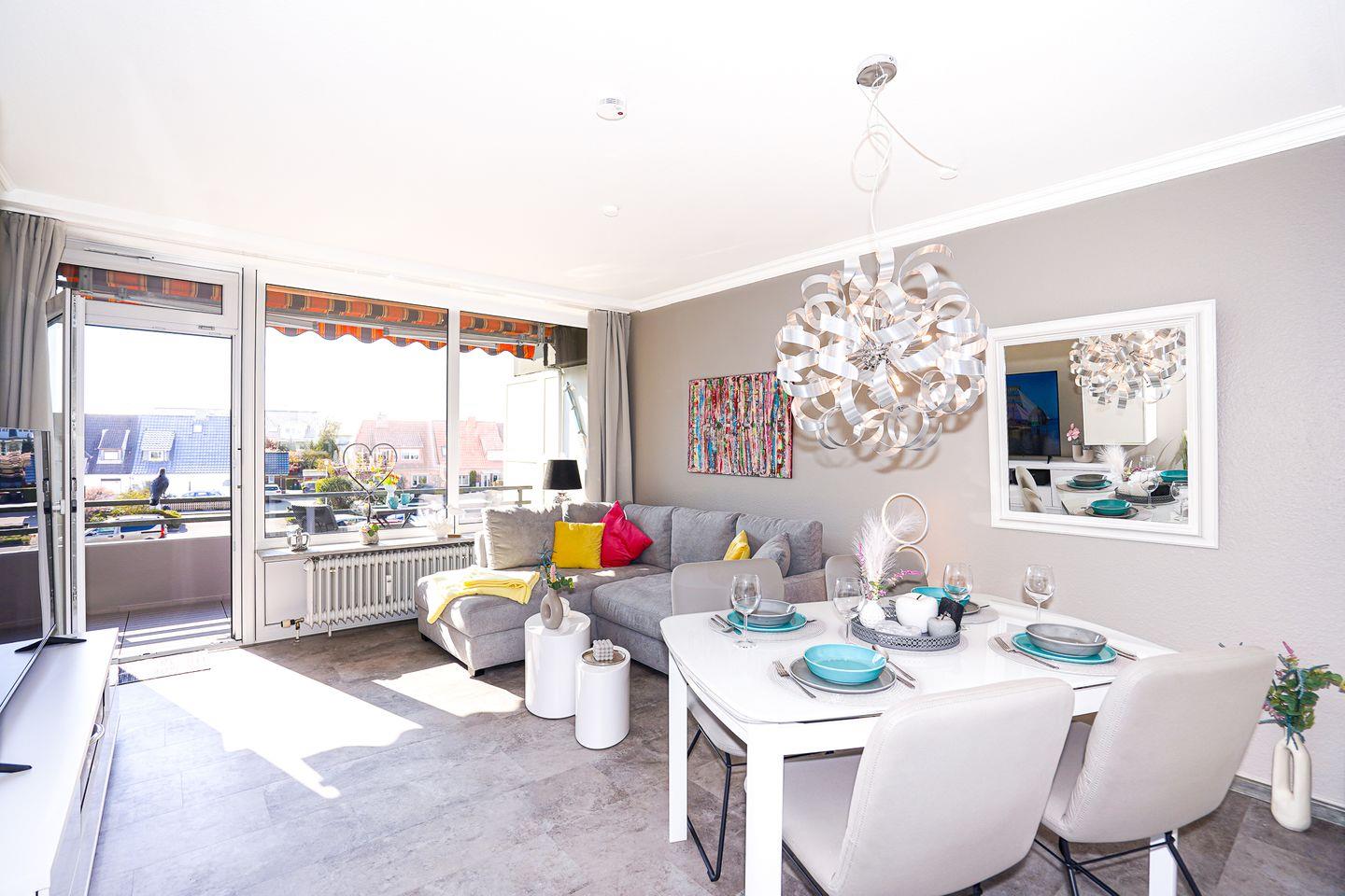 Neu sanierte Ferienwohnung mit Balkon, 200 m zum Strand in Grömitz, ideal für 3 Personen.