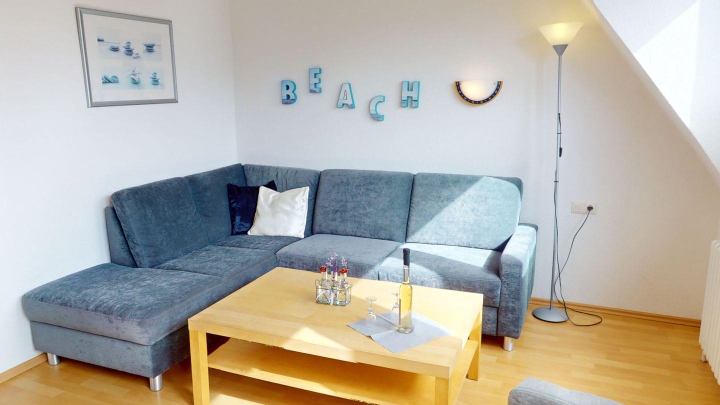 Die 76 m² große Ferienwohnung "Lagune" liegt im Obergeschoss des Hauses "GAST-ZEIT" am Grömitzer Kurpark, Bis zum Strand sind es nur 200 Meter!