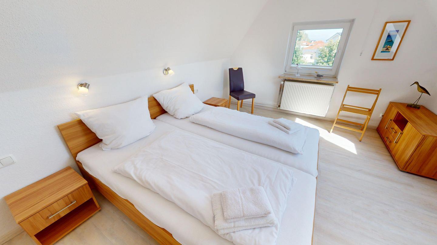 Gemütliche, strandnahe Dachgeschosswohnung für zwei Gäste am Kurpark in Grömitz mit eigenem Parkplatz und moderner Ausstattung.